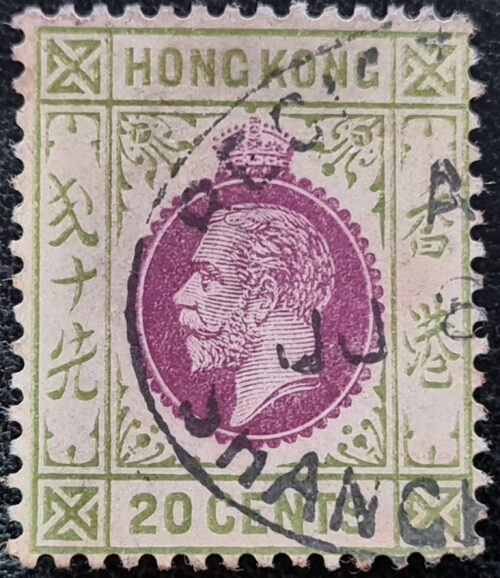 HONG KONG GV SG107 20c. purple & sage-green FU