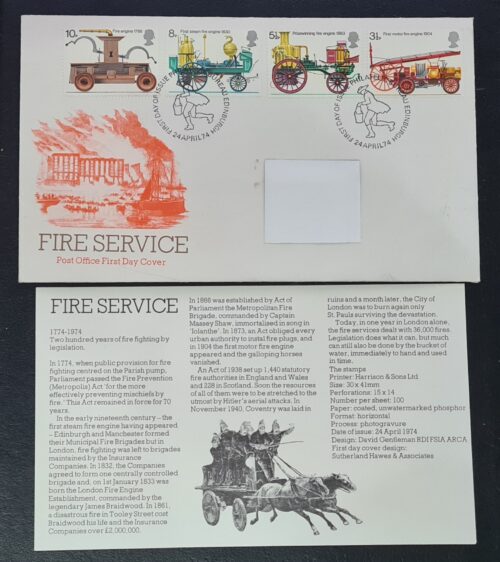 Great Britain 1974 First Day of Issue “FIRE SERVICE” 24 APR 1974 EDINBURGH