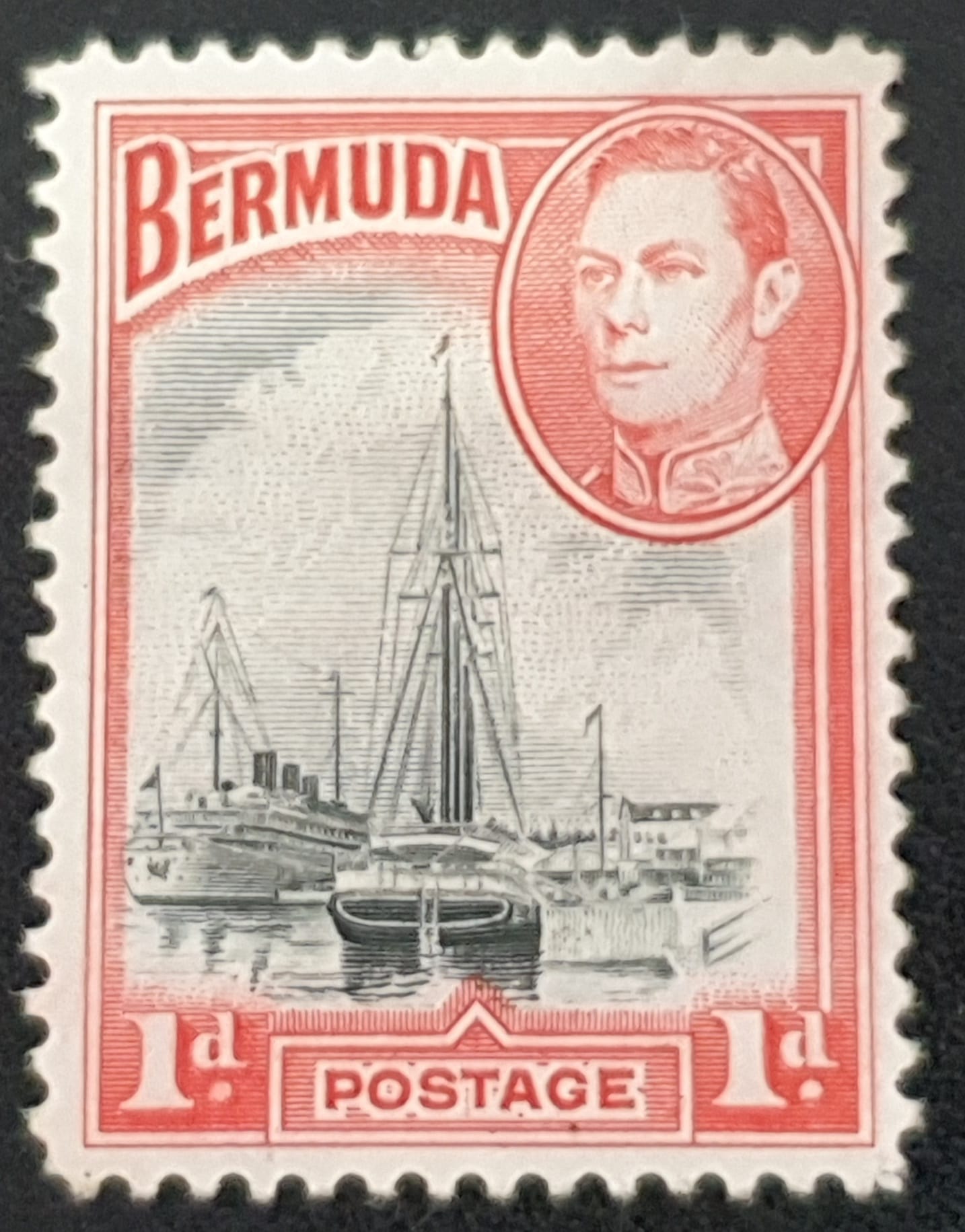 BERMUDA King George VI SG110 1d. black & red Mounted Mint Single Stamp