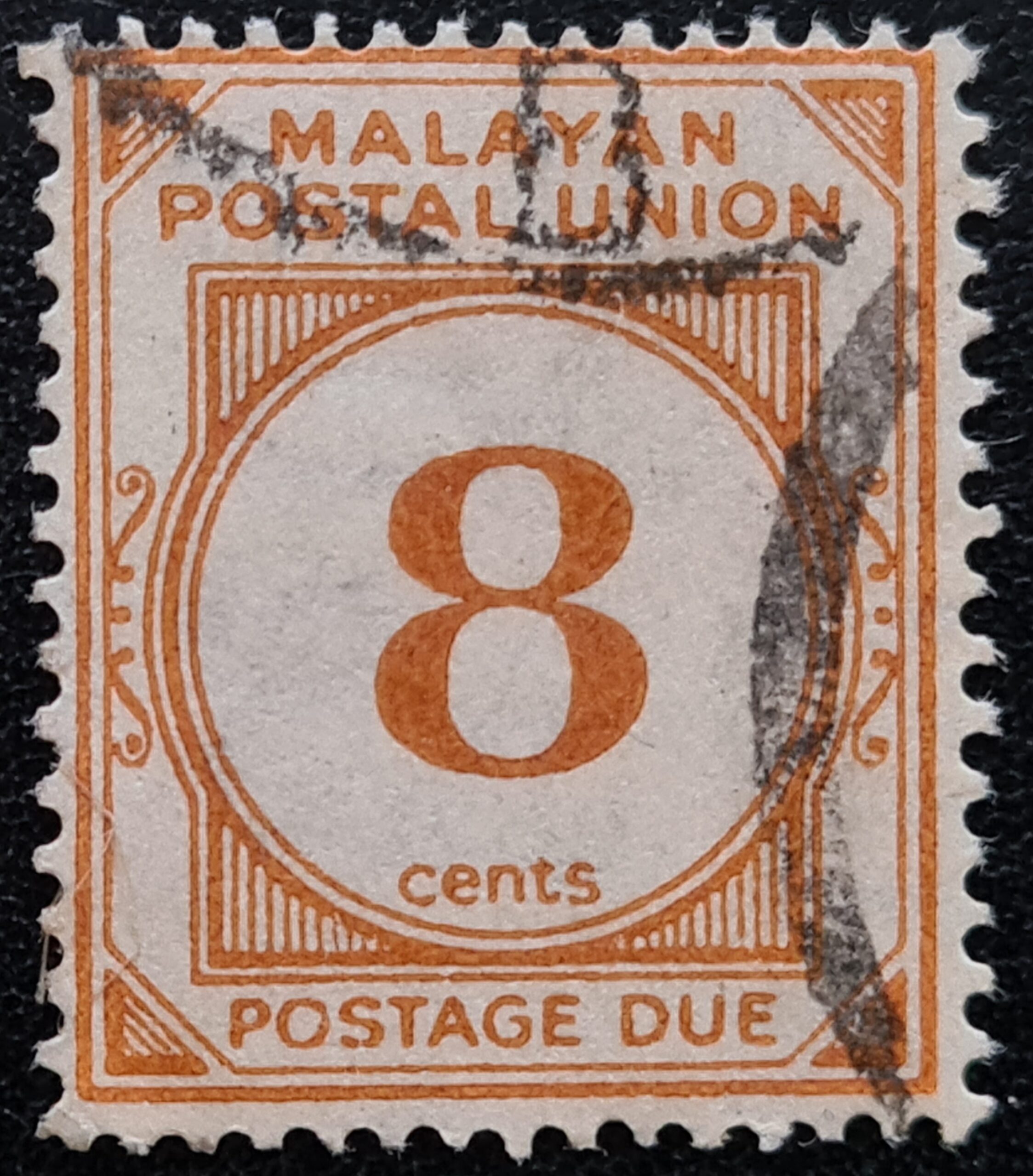 Malayan Postal Union 1949 SG D10 8c. yellow-orange used single stamp