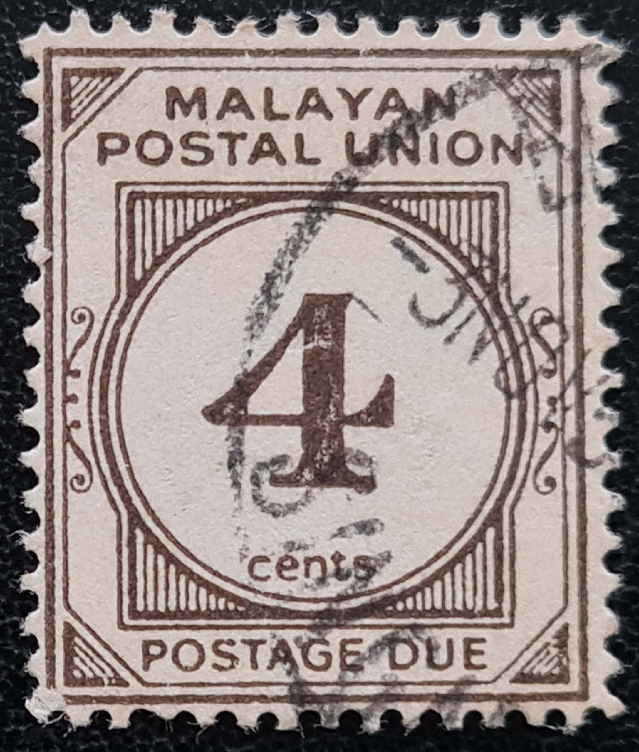 MALAYSIA – Malayan Postal Union QEII SG D17 4c. sepia used stamp