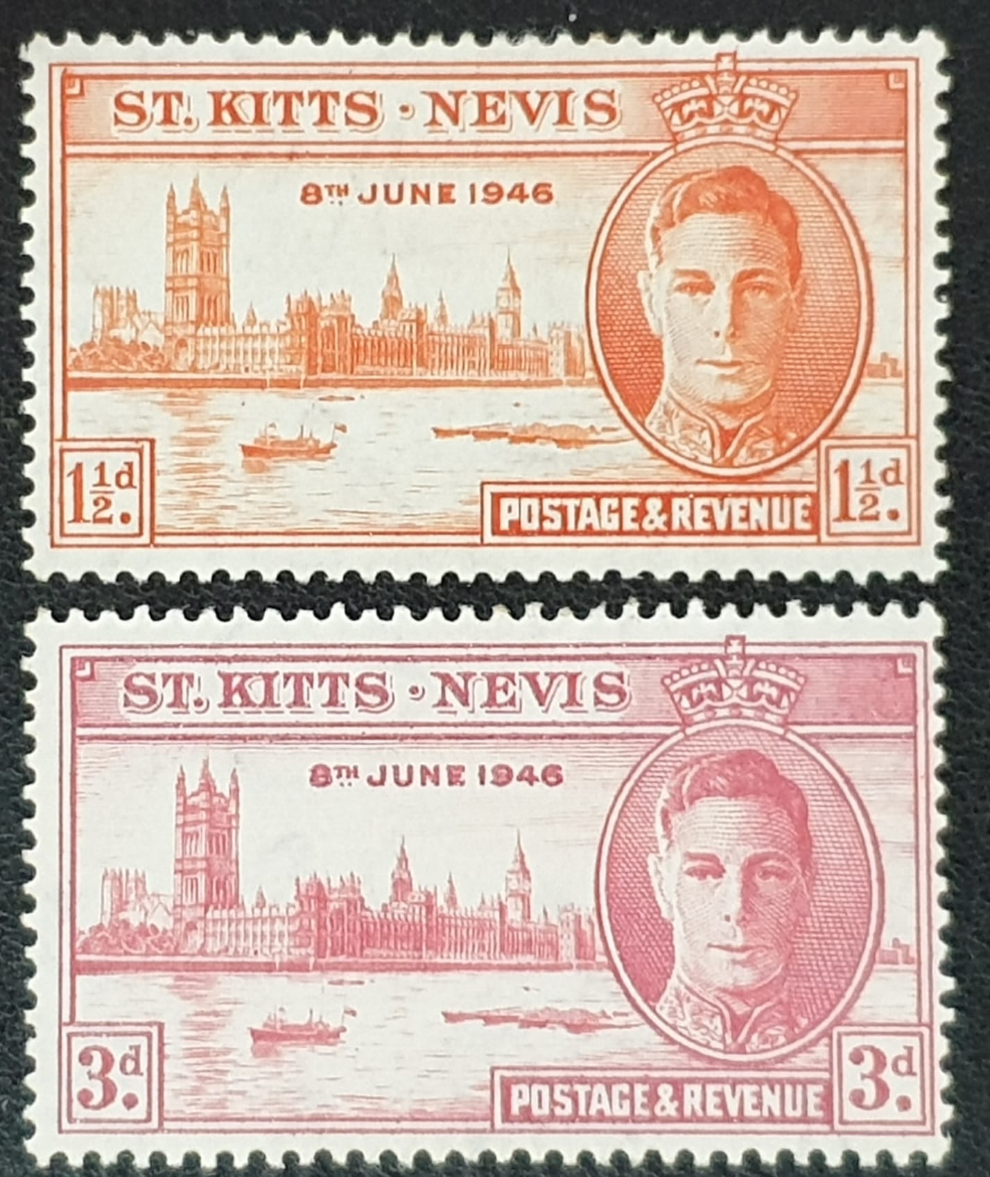 St. Kitts-Nevis 1946 “Victory” SG78/9 Set of 2 Mounted Mint Stamps