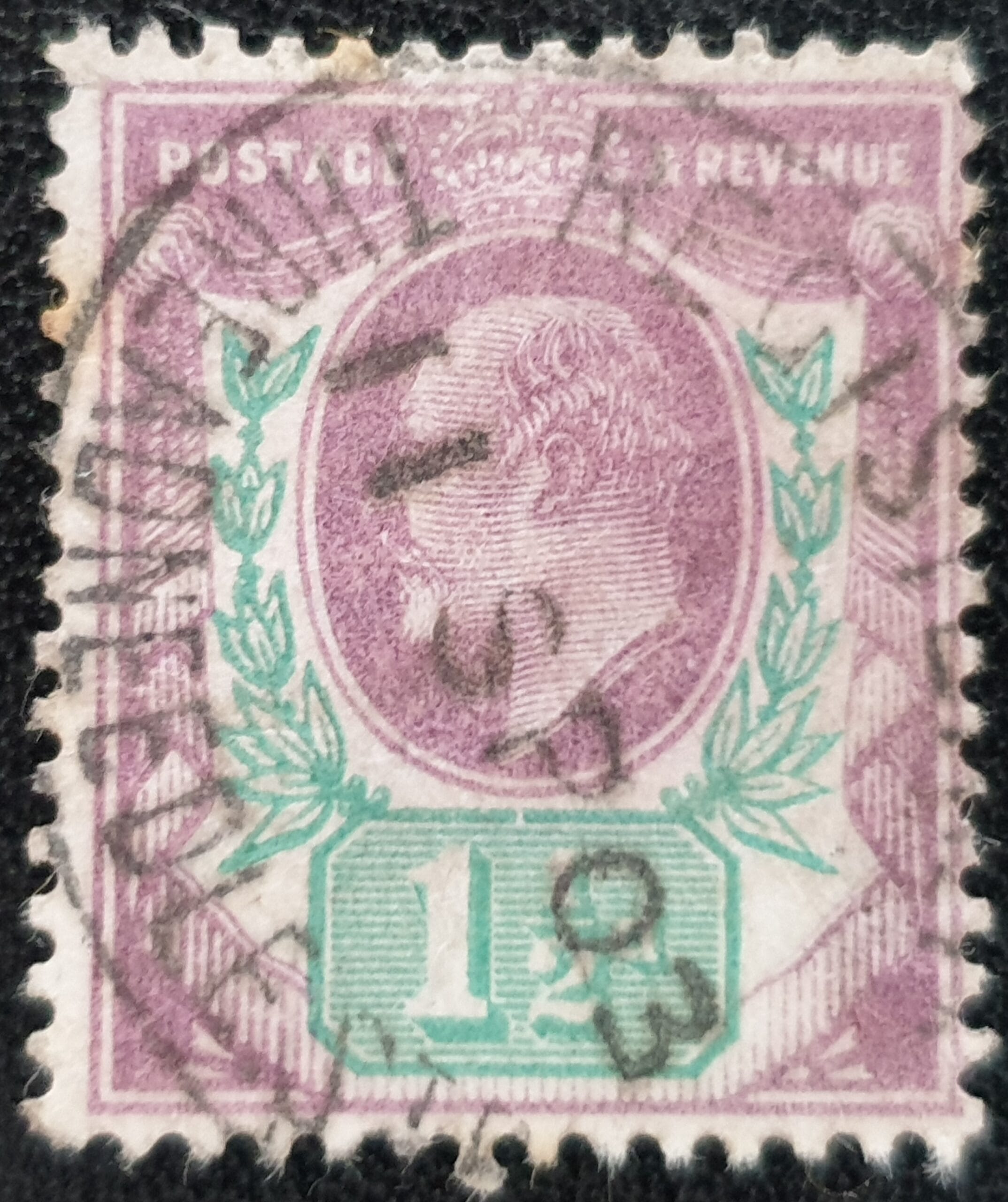 Great Britain King Edward VII 1902 SG221 dull purple & green Registered Threadneedle Street London used stamp
