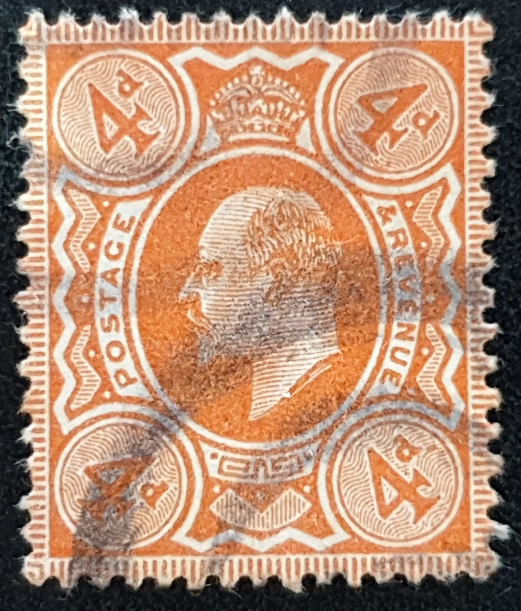 Great Britain King Edward VII 1911 SG286 SPEC M27(1) 4d bright orange USED