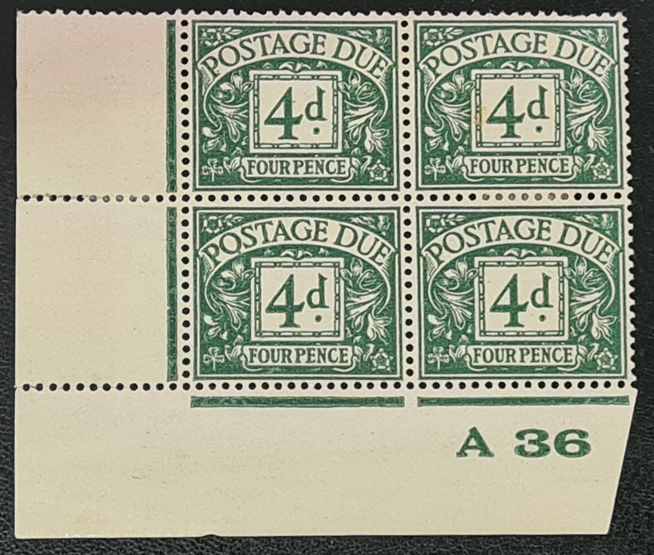 Great Britain King Edward VIII 1936 Postage Due SG D23 Control A36 Block of 4 M/M