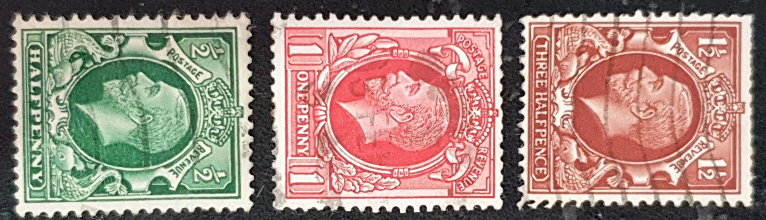 Great Britain King George V 1934 SG439a/441d Part Set of 3 Sideways Watermark Size C Used