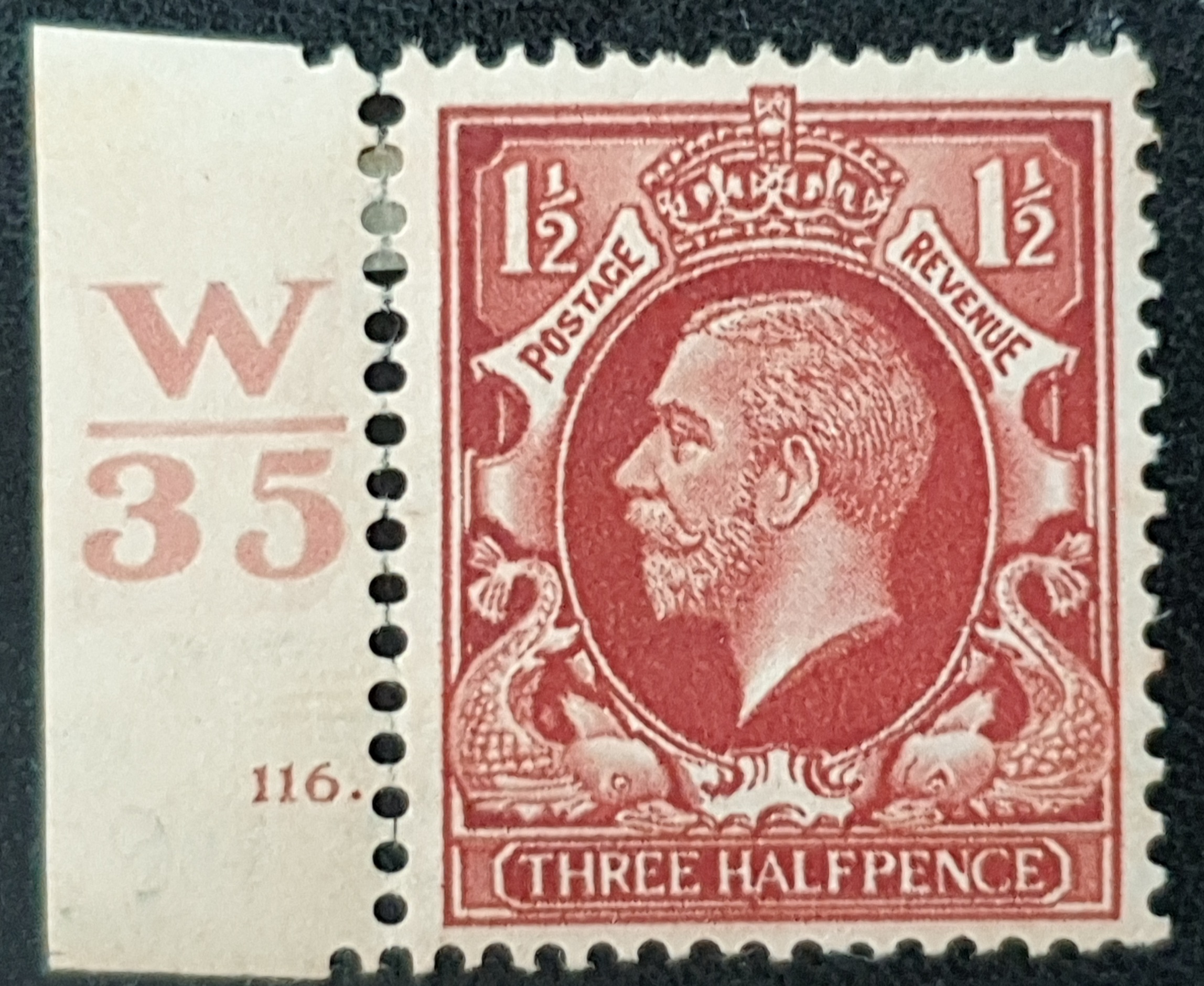 Great Britain King George V 1934 SG441 1½d red-brown Control W35 Cyl. 116 Dot LMM