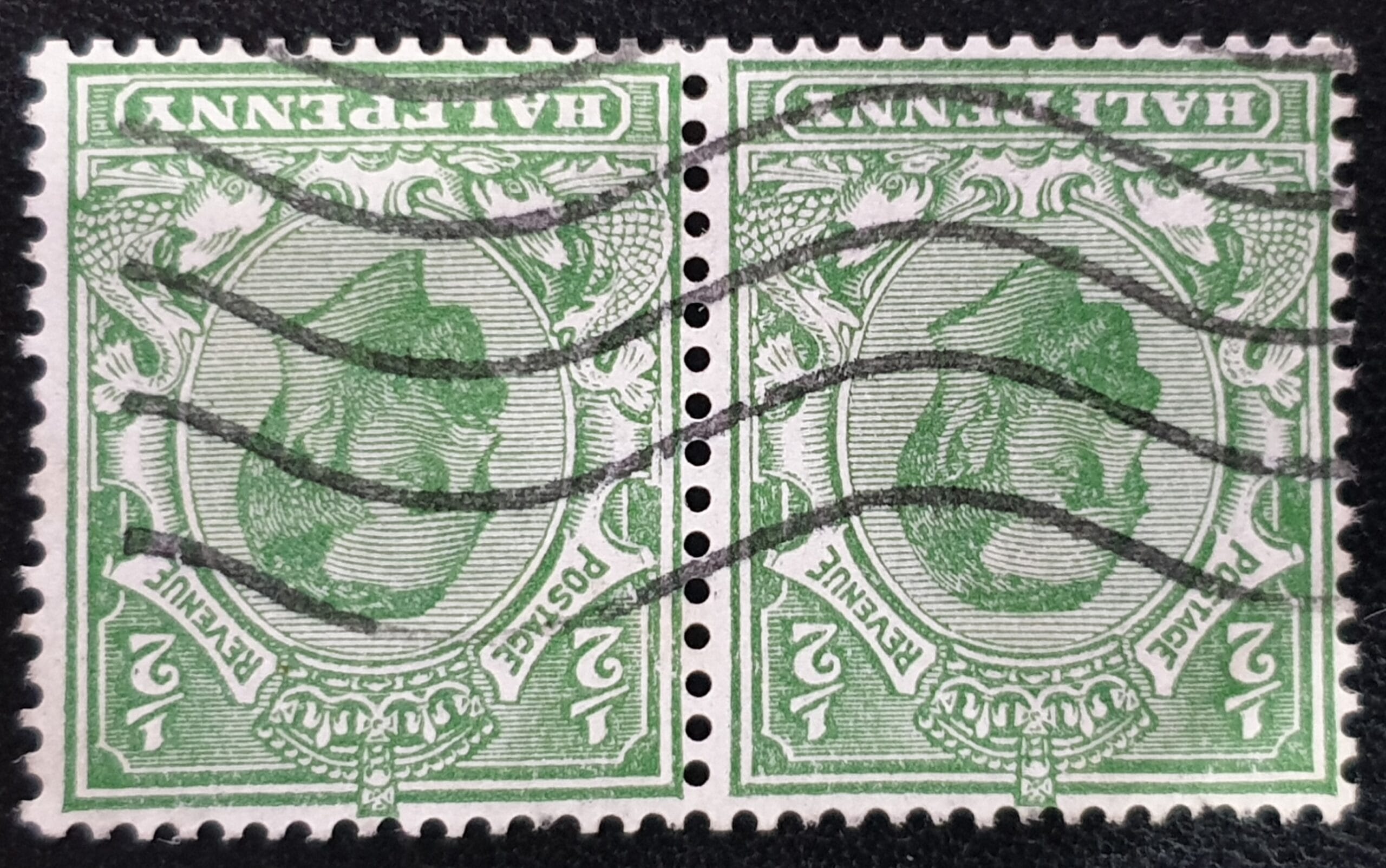 Great Britain King George V SG335wi ½d Green WATERMARK INVERTED Used Pair