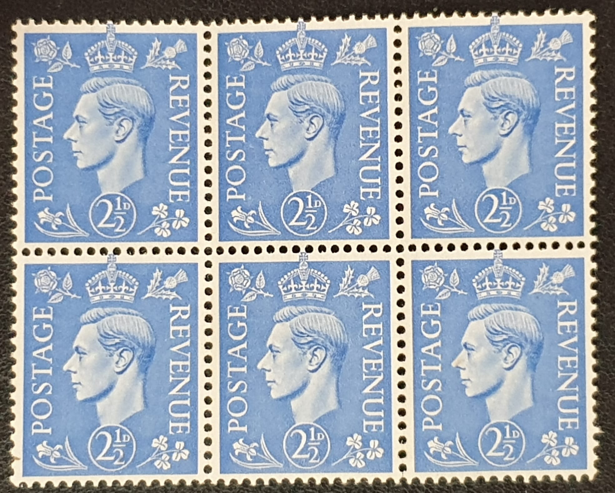 Great Britain King George VI 1941/2 SG489 2½d Ultramarine Block of 6 MNH