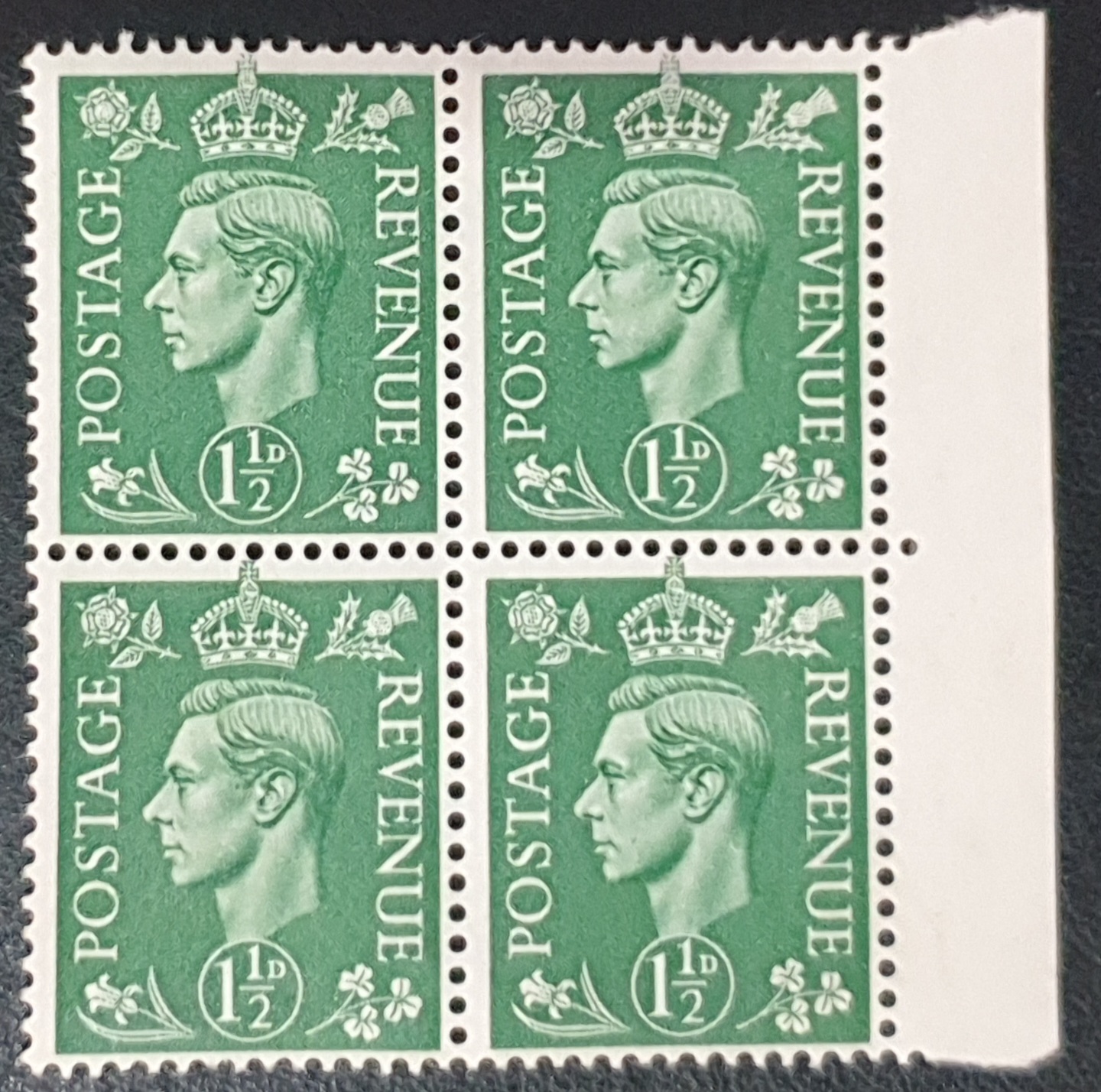 Great Britain King George VI 1951 SG505 1½d. PALE GREEN – Block of 4 MNH