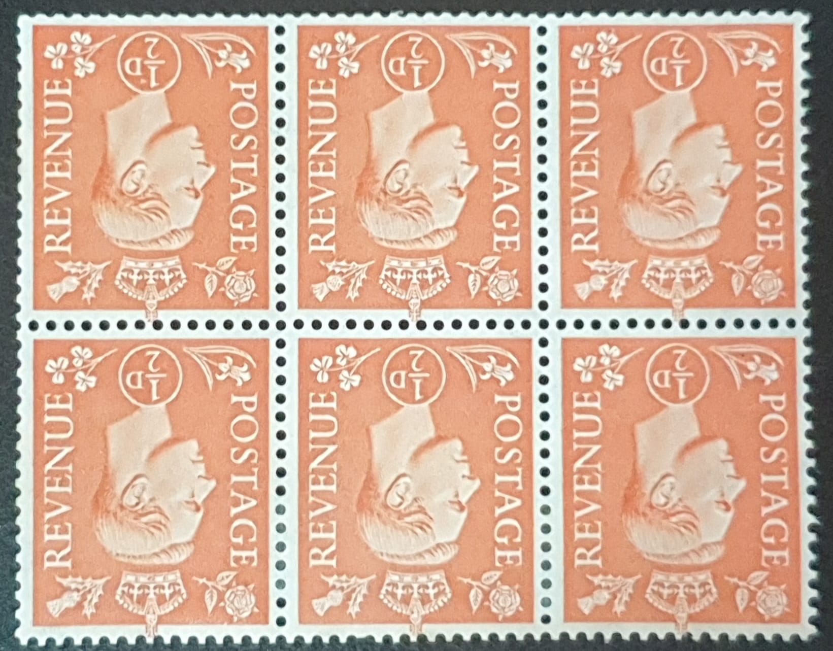 Great Britain King George VI SG503wi Block of 6 Wmk. Inverted M/M