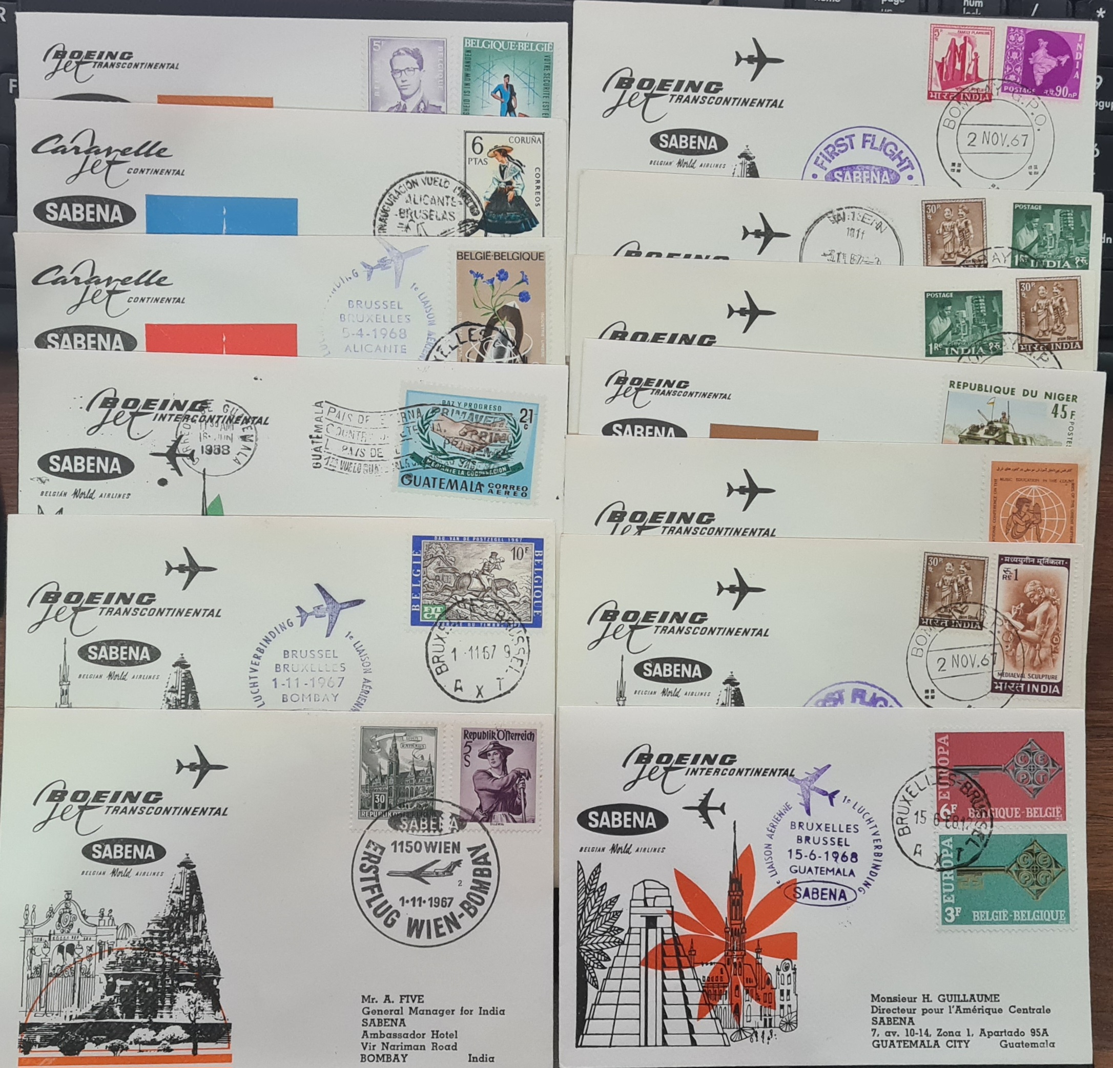 Boeing Sabena 1967/8 Covers Collection (13) First Flight