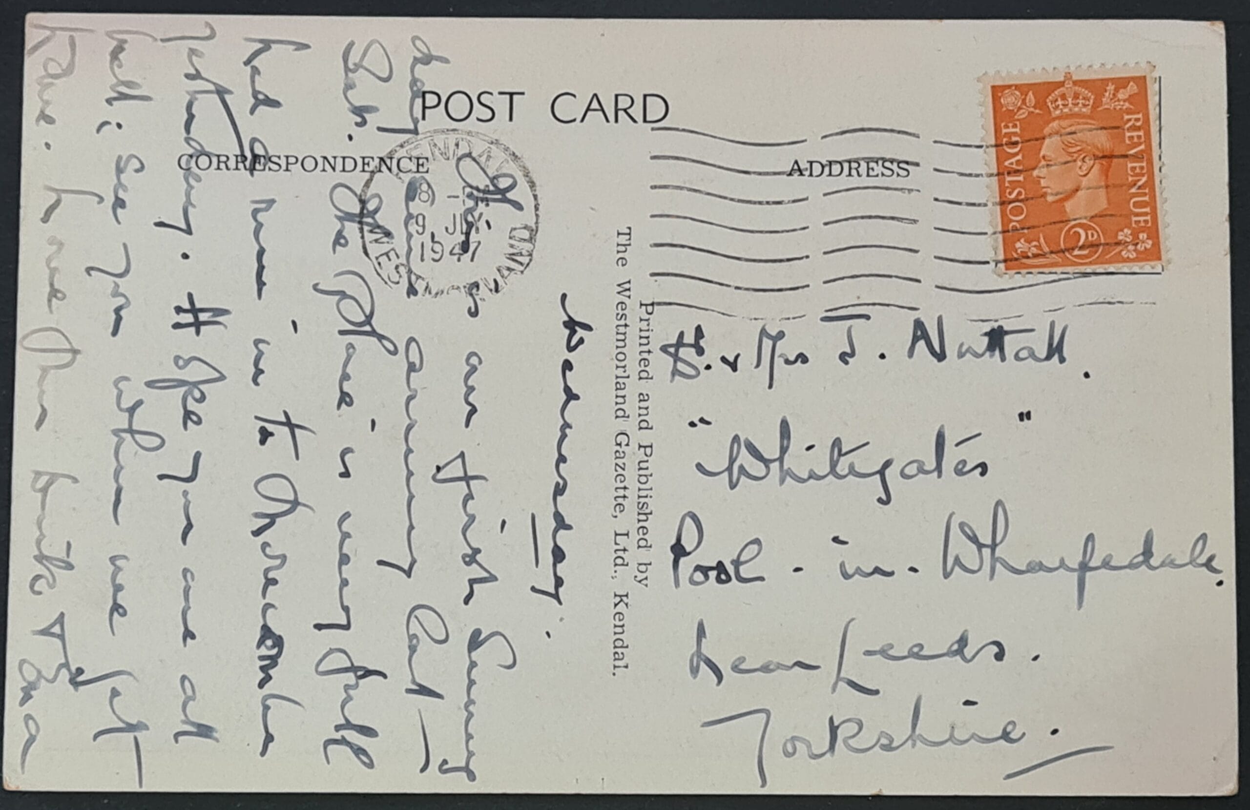 Great Britain POST CARD. ULLSWATER FROM STYBARROW. Used