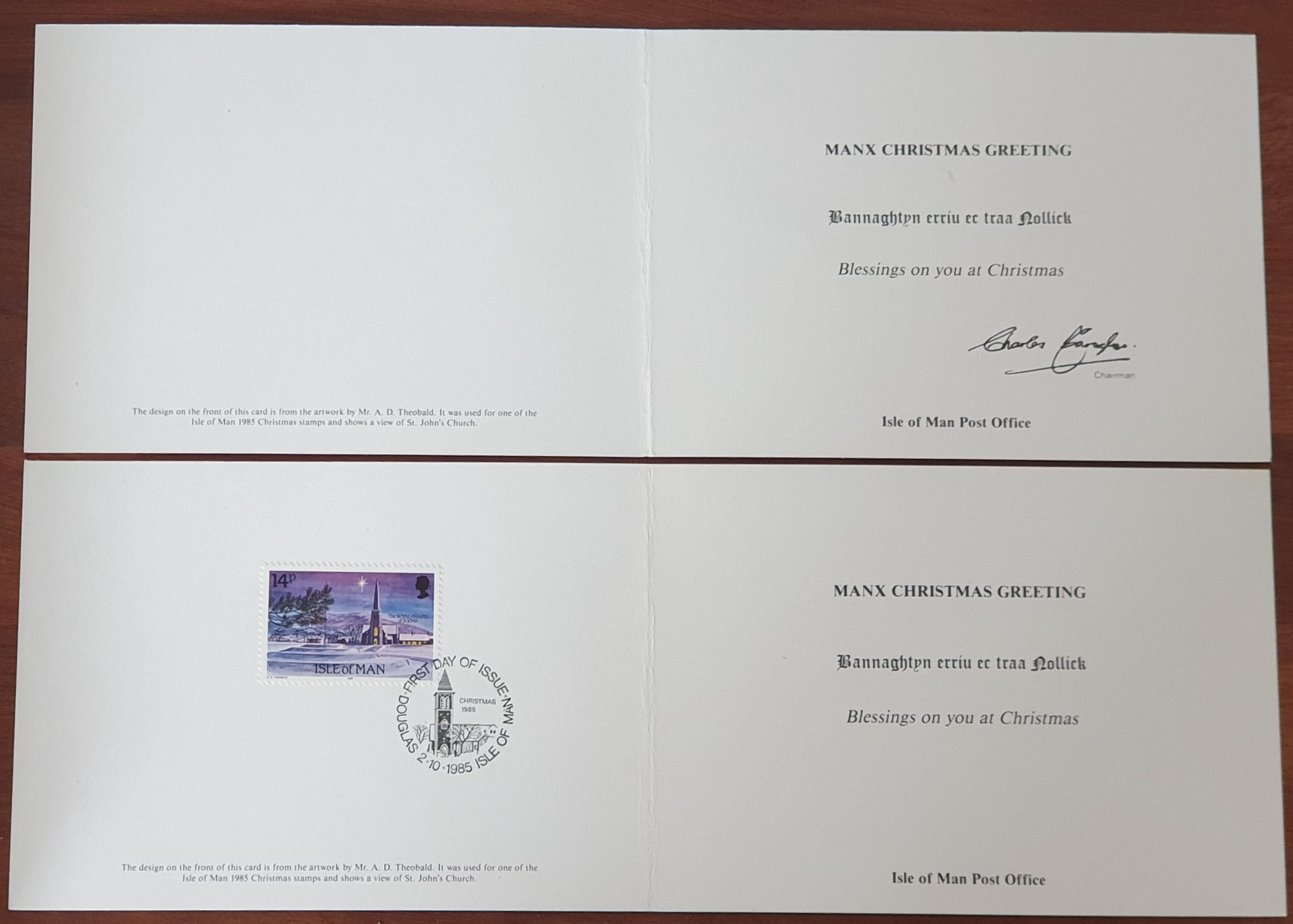 Isle Of Man 1985 Christmas Card FDI Used & Unused Set of 2