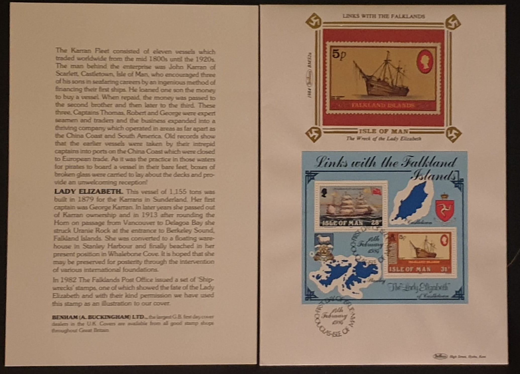 Isle of Man FDC “Falkland Islands” Miniature Sheet, BENHAM BMS2a