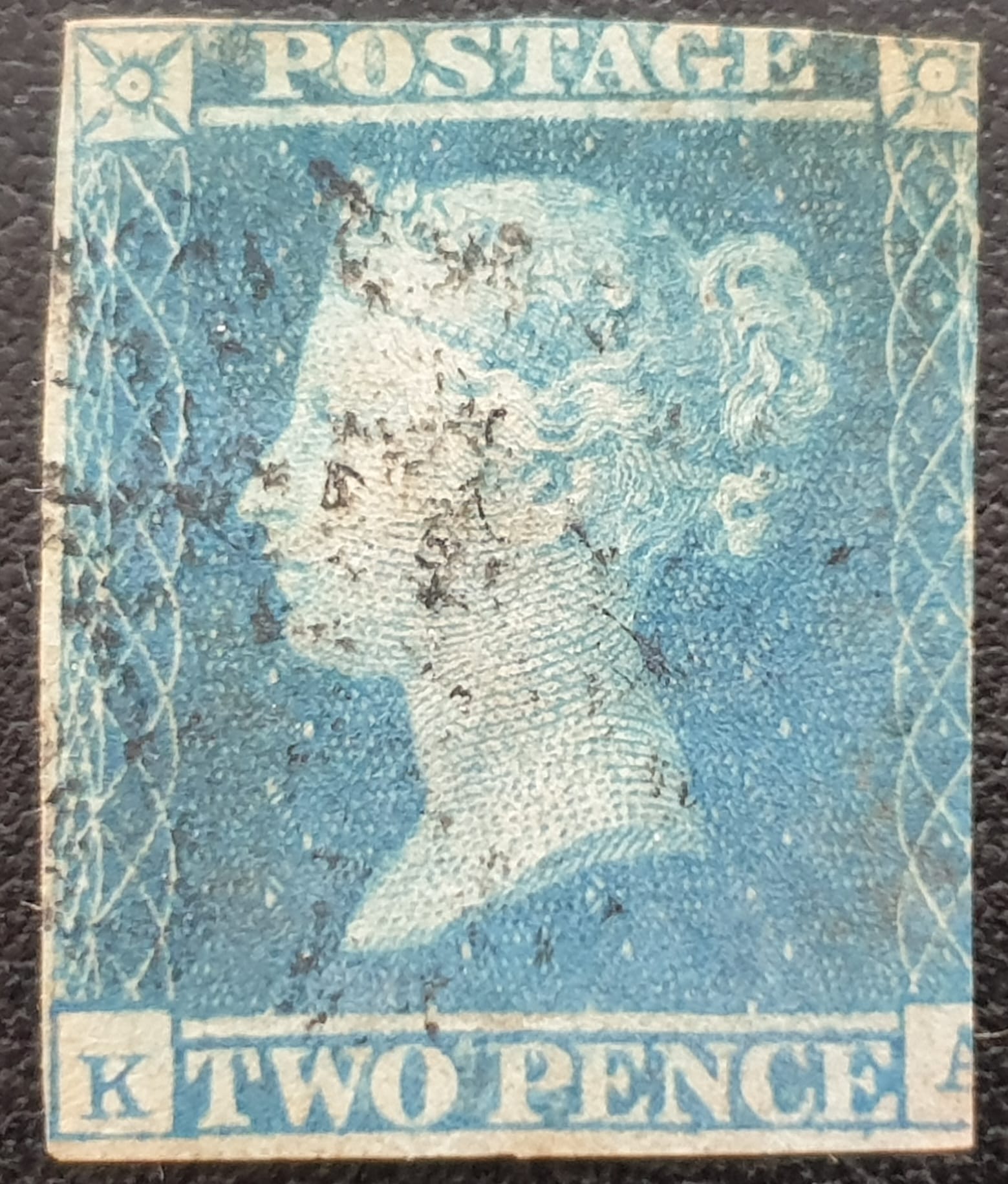 Great Britain Queen Victoria 1841 2d. pale blue SG13 Letters K-A Black Maltese Cross used stamp