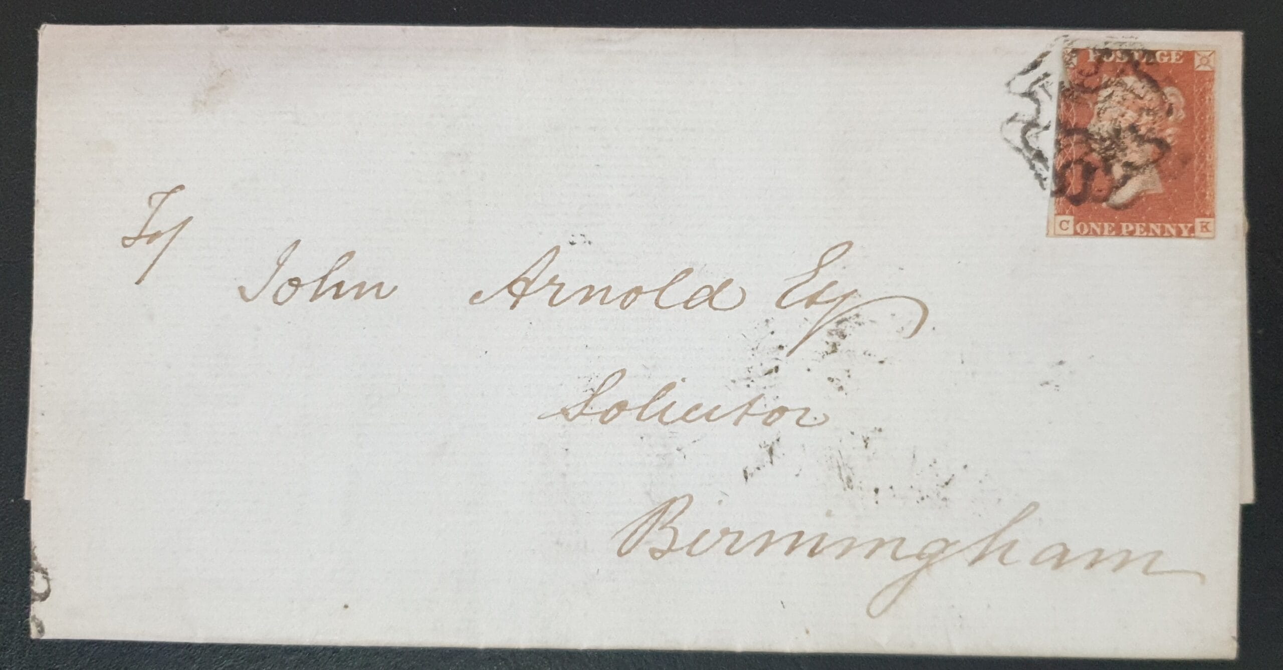 Great Britain Queen Victoria 1843 Letter from Bewdley to Birmingham 7/6/1843 SG8 1d red Letters C-K Black Maltese Cross