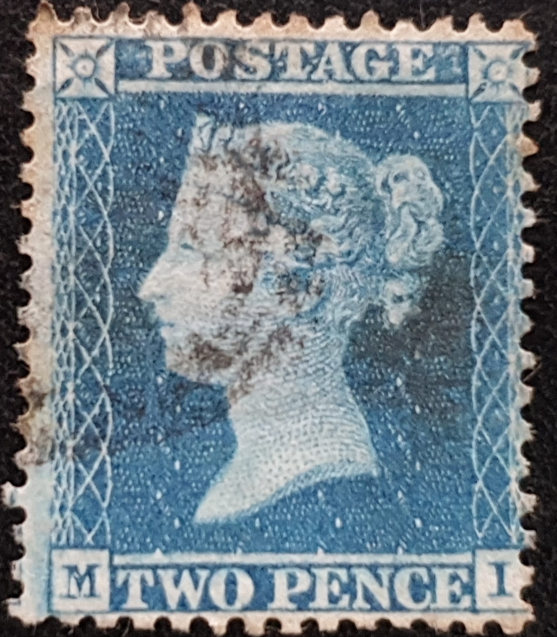 Great Britain Queen Victoria 1855 2d blue Plate 5 MI LC14 used
