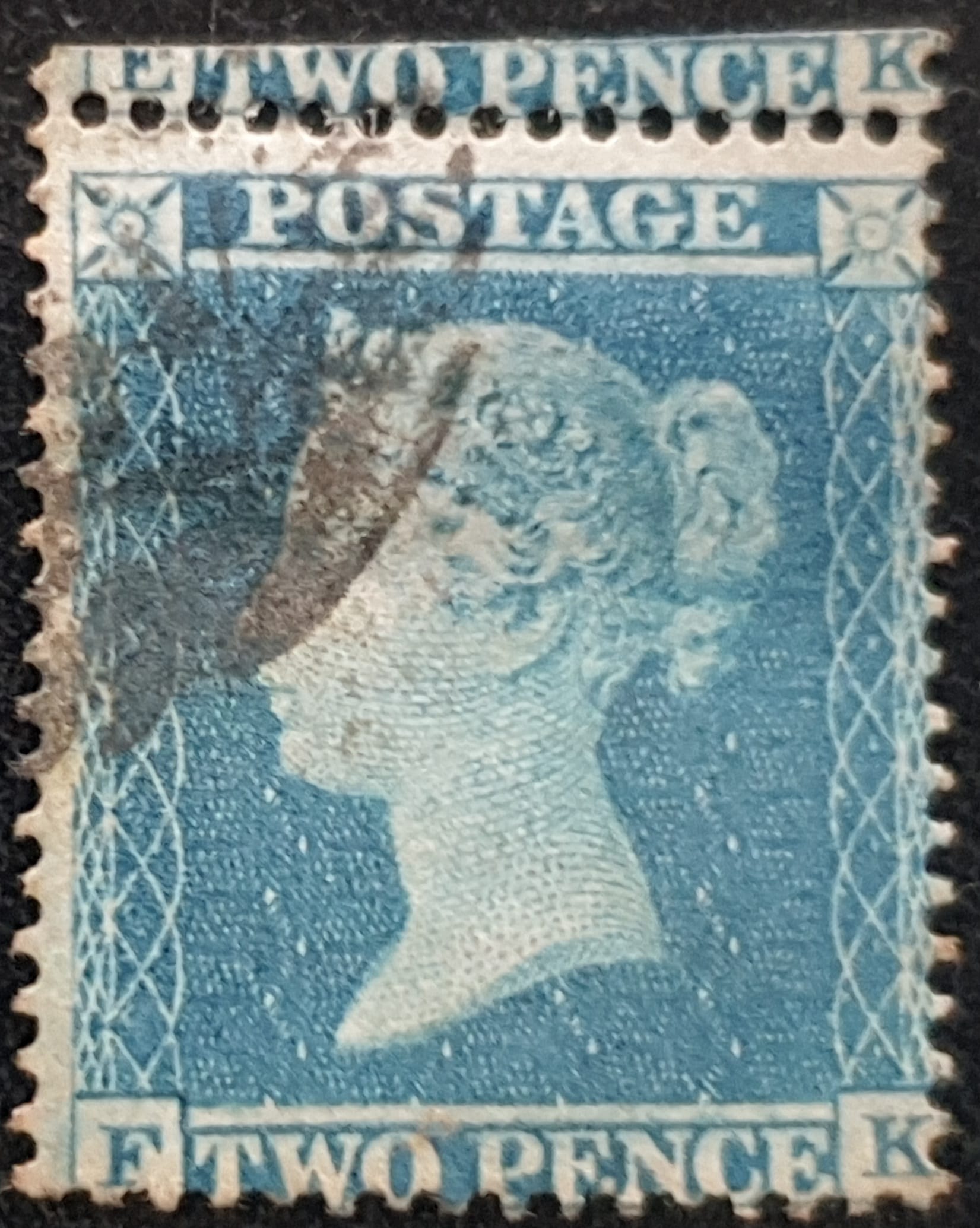 Great Britain Queen Victoria 1855 SG20a 2d. blue Plate 5 Letters FK used