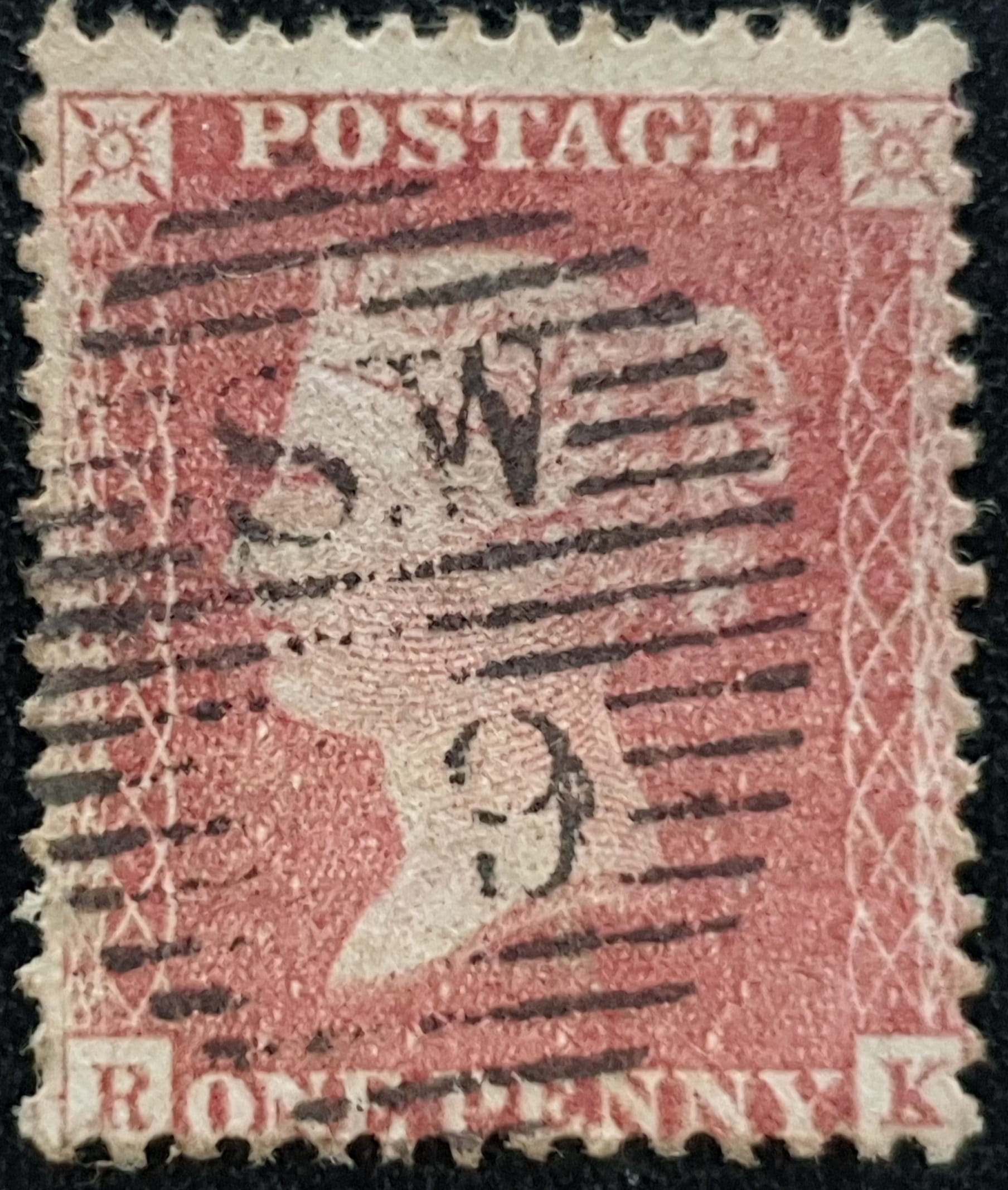 Great Britain Queen Victoria 1855 SG29-C8j Gothic ‘k’ 1d red Plate 27 RK used