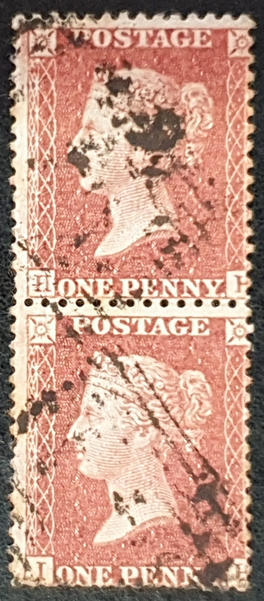 Great Britain Queen Victoria 1857 1d red Die II Plate 45 R17 (C9/11) Pair HH-JH used