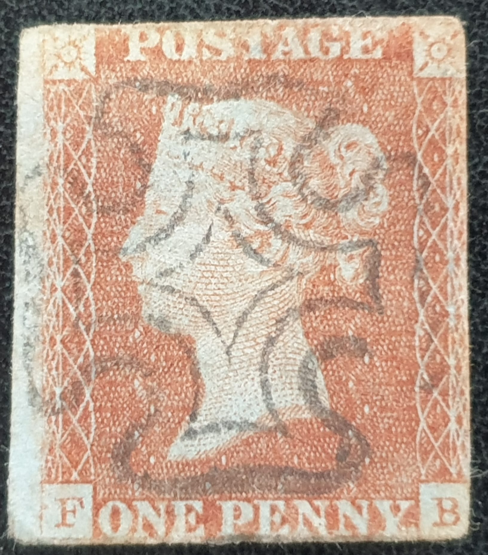 Great Britain Queen Victoria 1d. Red-Brown SG.8 ‘Black’ Maltese Cross, F-B Plate 26 used stamp