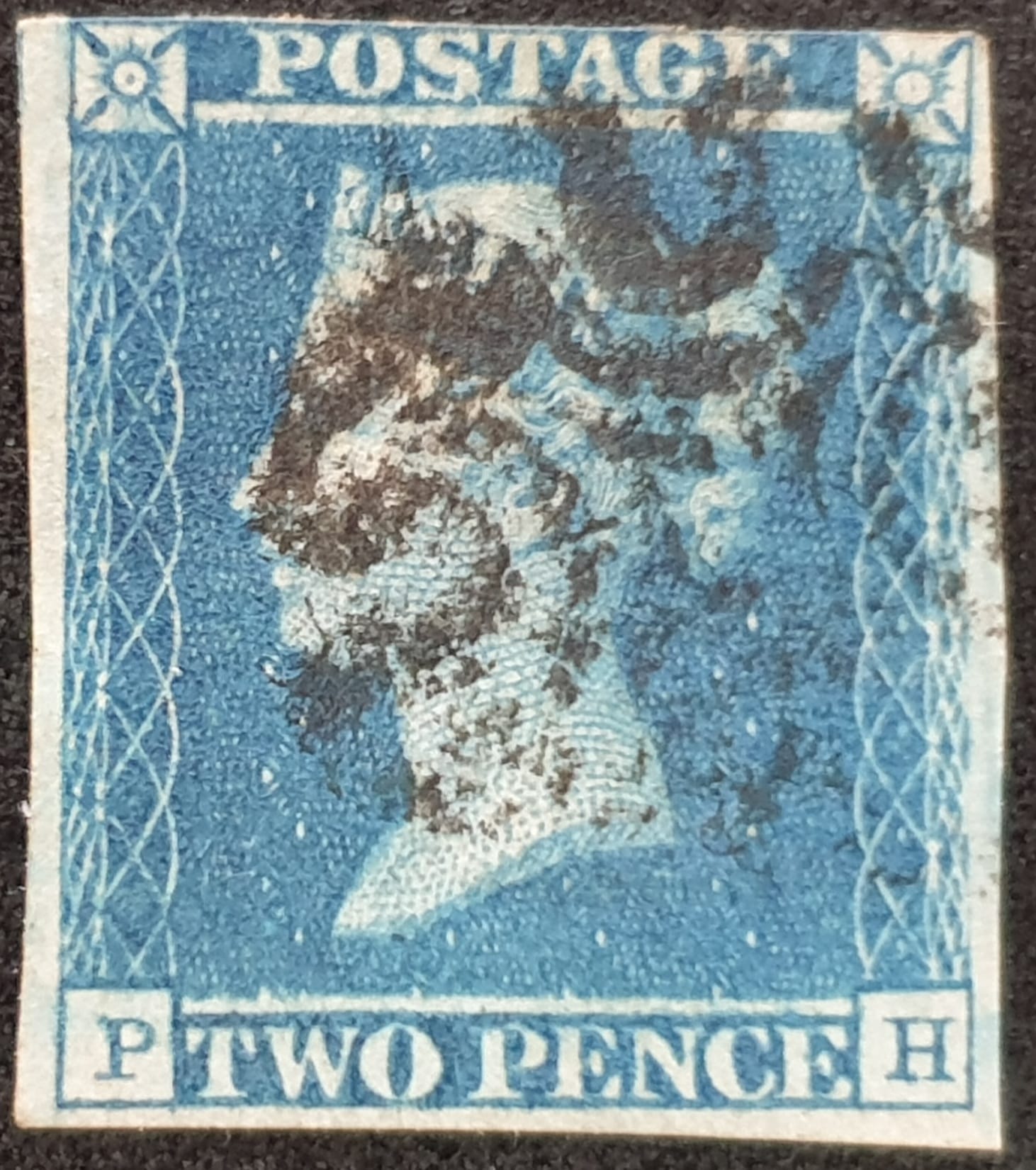 Great Britain Queen Victoria 2d. Blue SG14 Black Maltese Cross Letters P-H Plate 3 Used Stamp