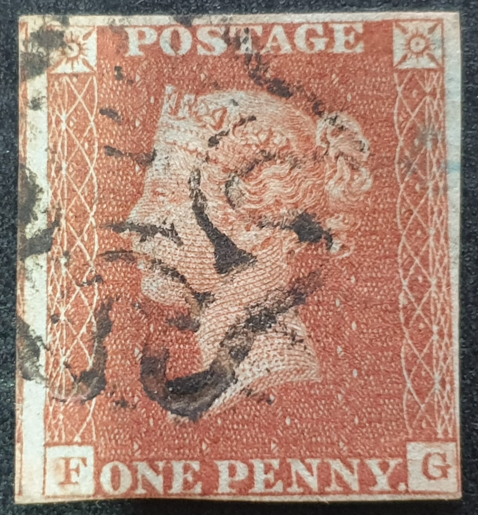 Great Britain Queen Victoria SG8 1d. red-brown Letters F-G Black MX used stamp
