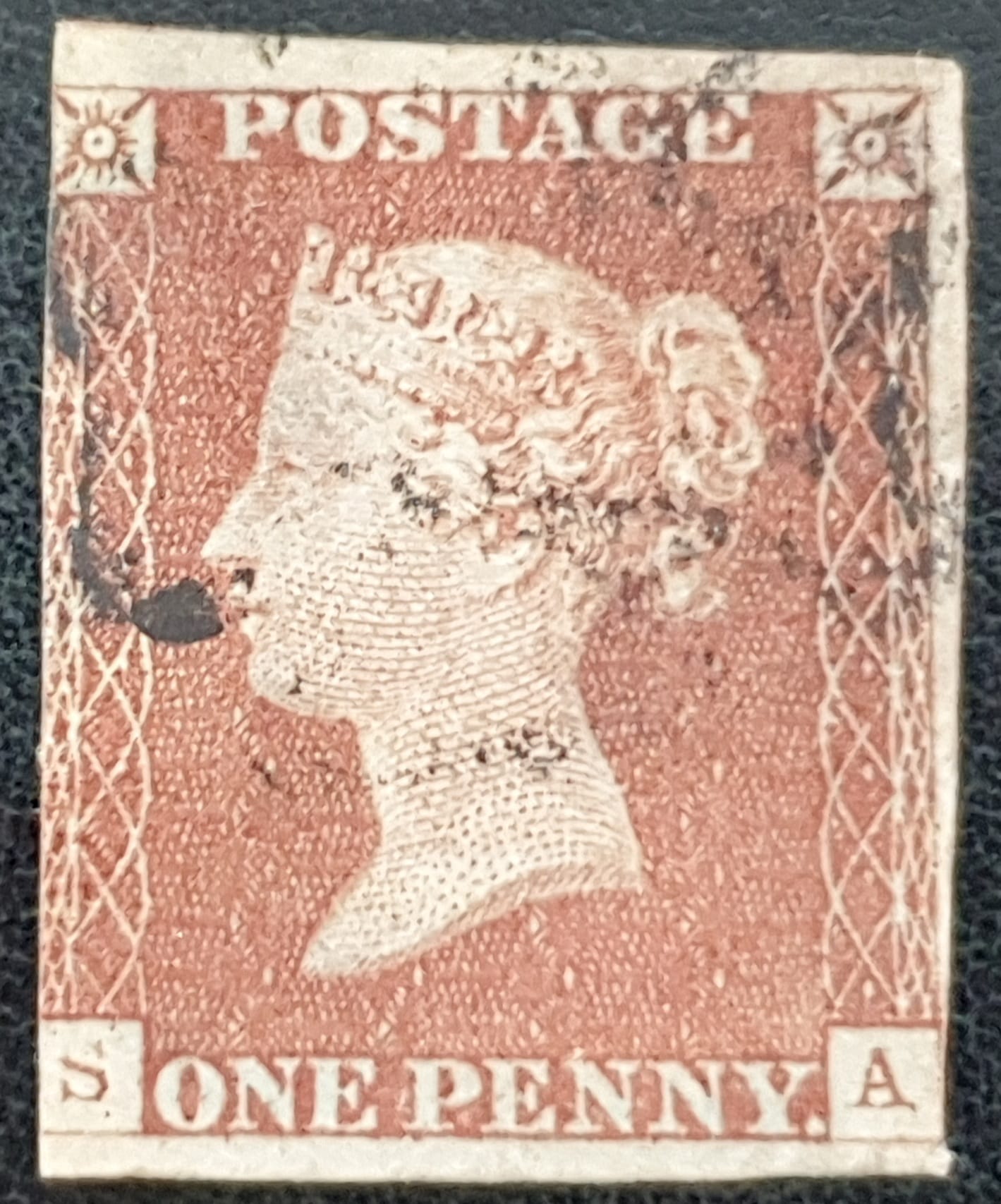 Great Britain Queen Victoria SG8 1d red Plate 28 S-A Black MX used stamp