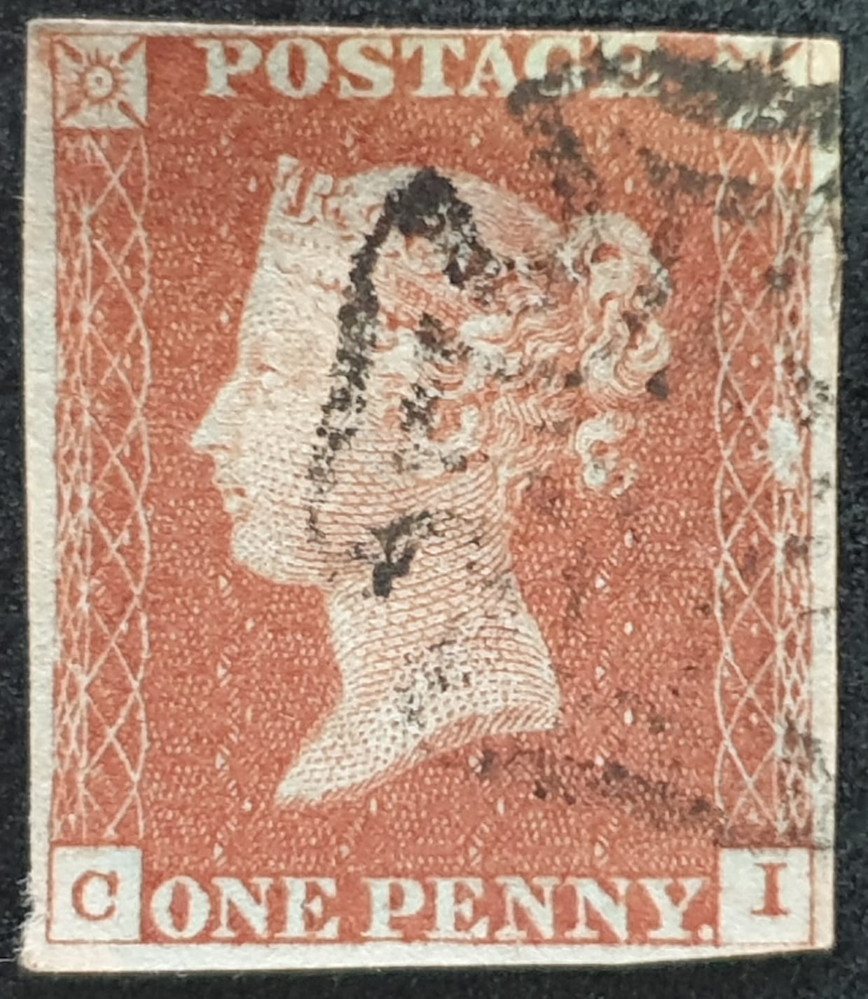 Great Britain Queen Victoria SG8 1d. red-brown Letters C-I Black MX Plate 38 Ivory Head used stamp