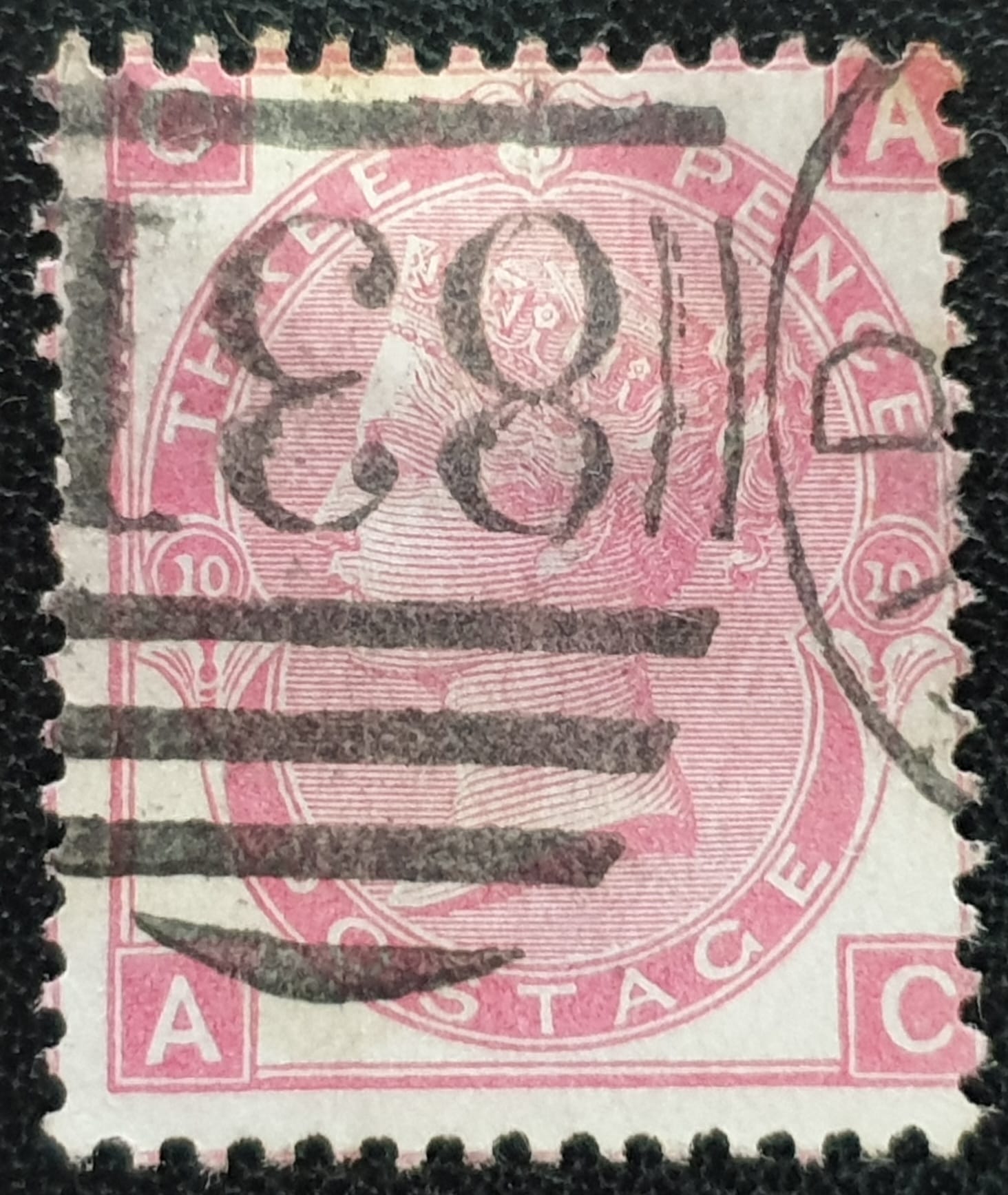 Great Britain Queen Victoria 1868 SG 103 3d. rose , Plate 10, Letters A-C, used stamp