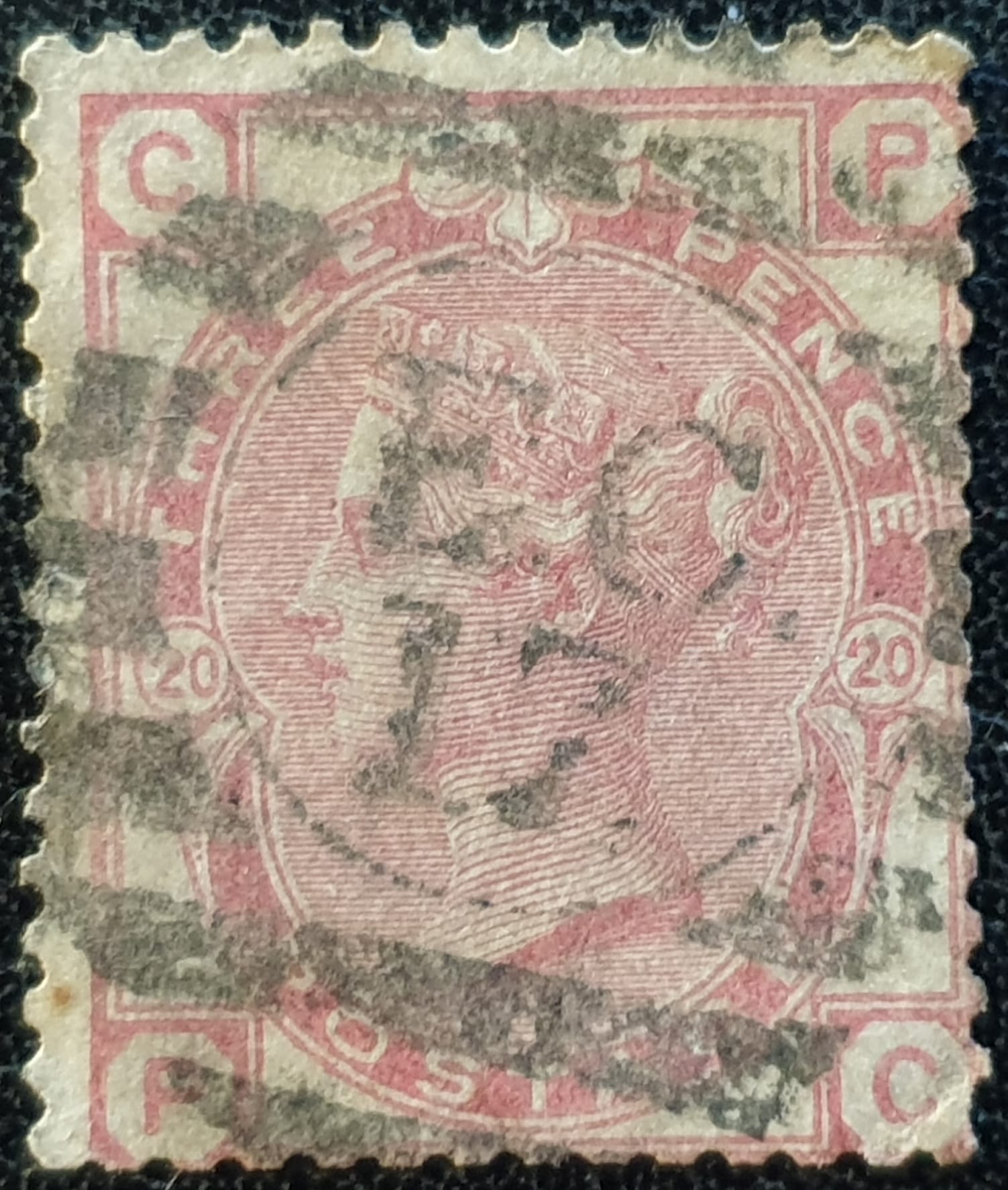 Great Britain Queen Victoria 1879 SG 144 3d. pale rose , Plate 20, Letters P-C used stamp