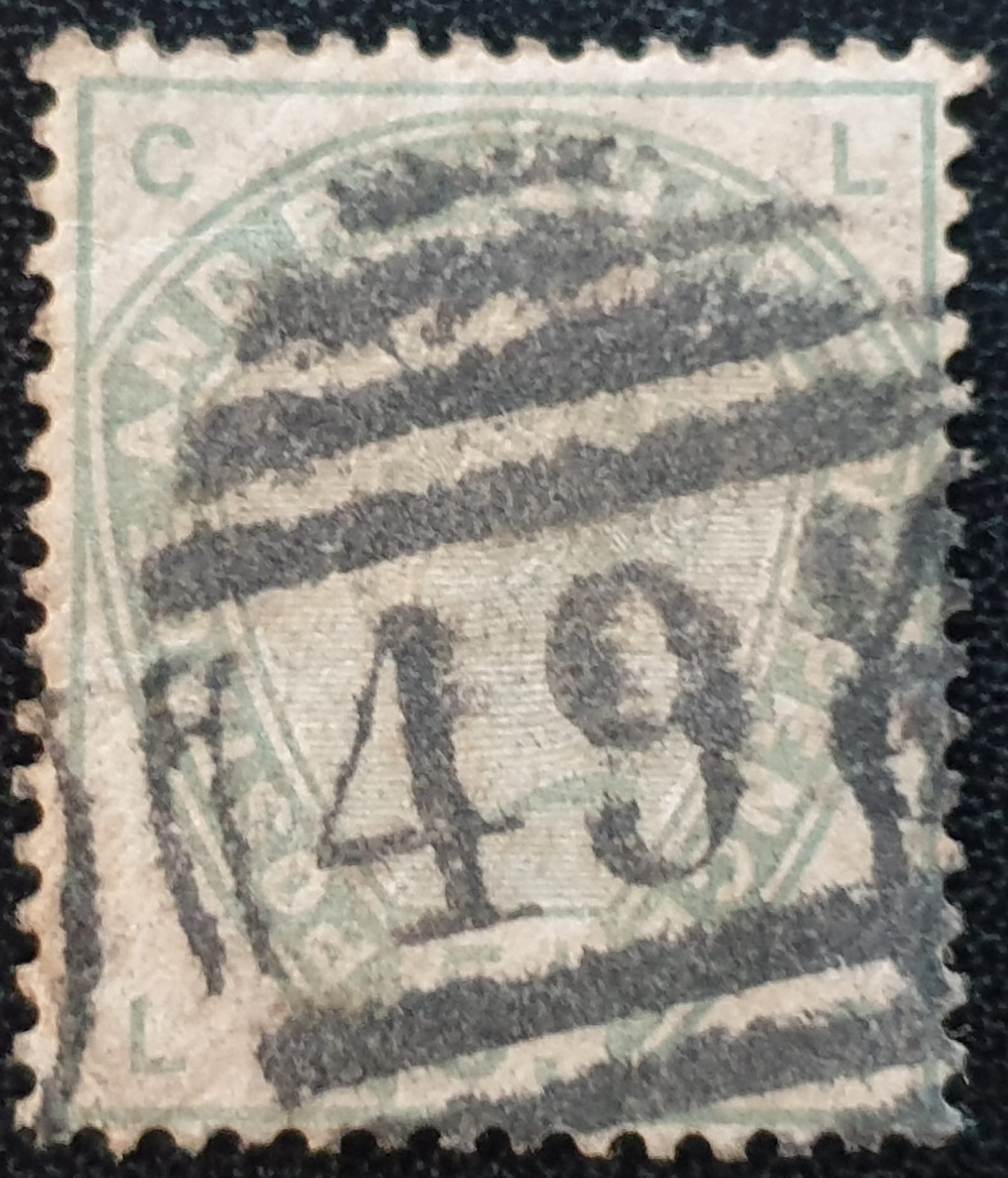 Great Britain Queen Victoria SG.193 5d. dull green Letters L-C used stamp