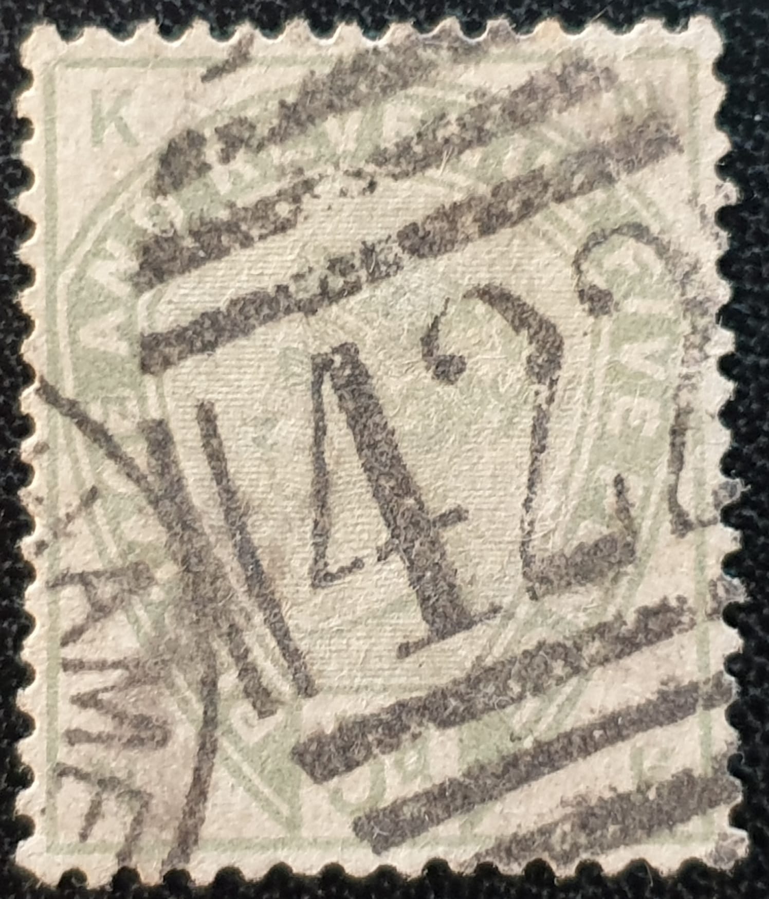 Great Britain Queen Victoria SG193 5d. dull green Letters N-K used stamp