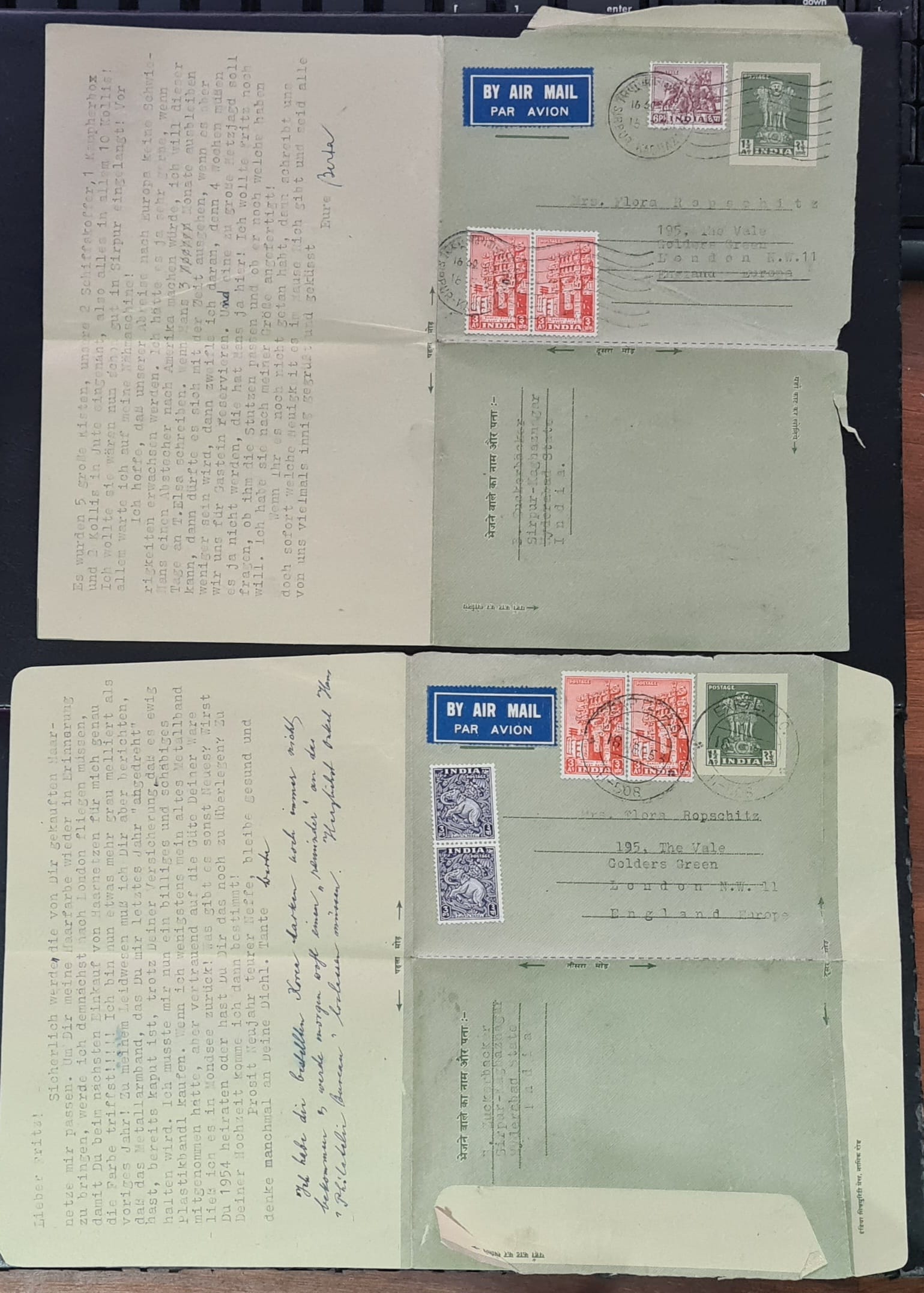 India 1953, 1954 Air Mail Covers Sirpur – London