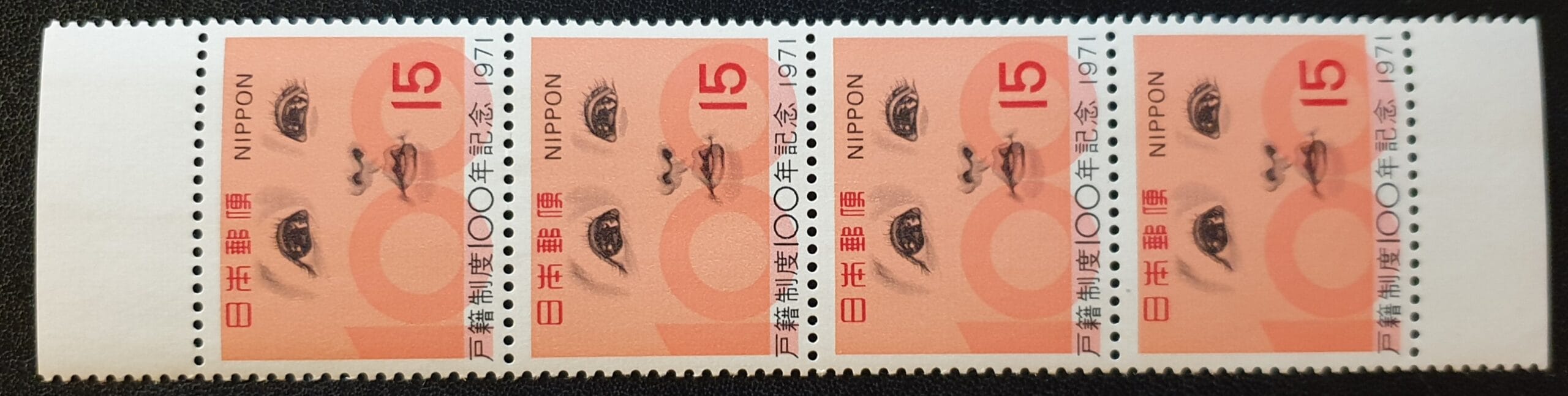 Japan 1971 “Child Face and 100” SG1272 Strip of 4 MNH