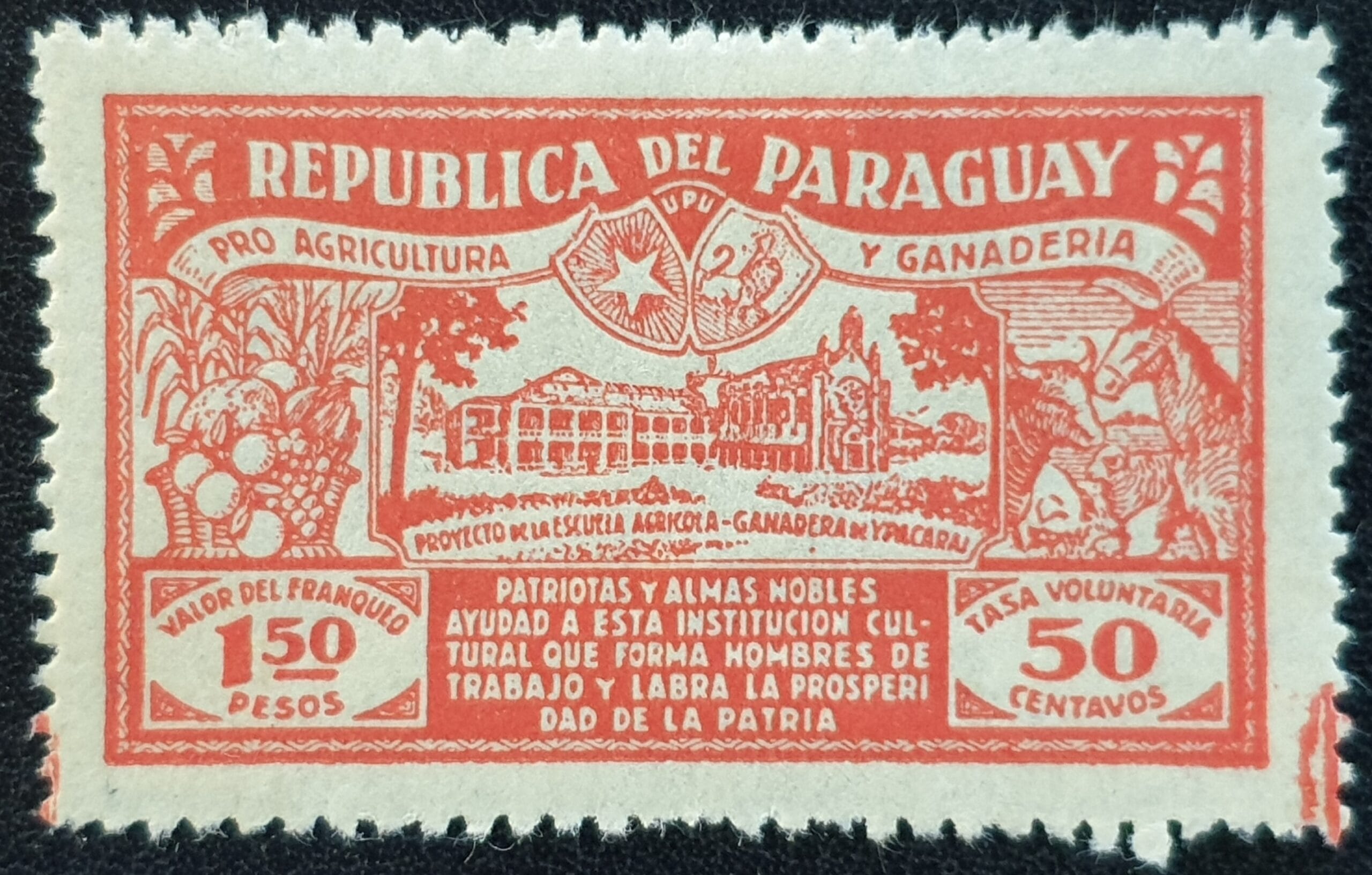 Paraguay 1931 “Agricultural Collage Fund.” SG390 1p.50+50c. red Lightly Mounted Mint Single Stamp