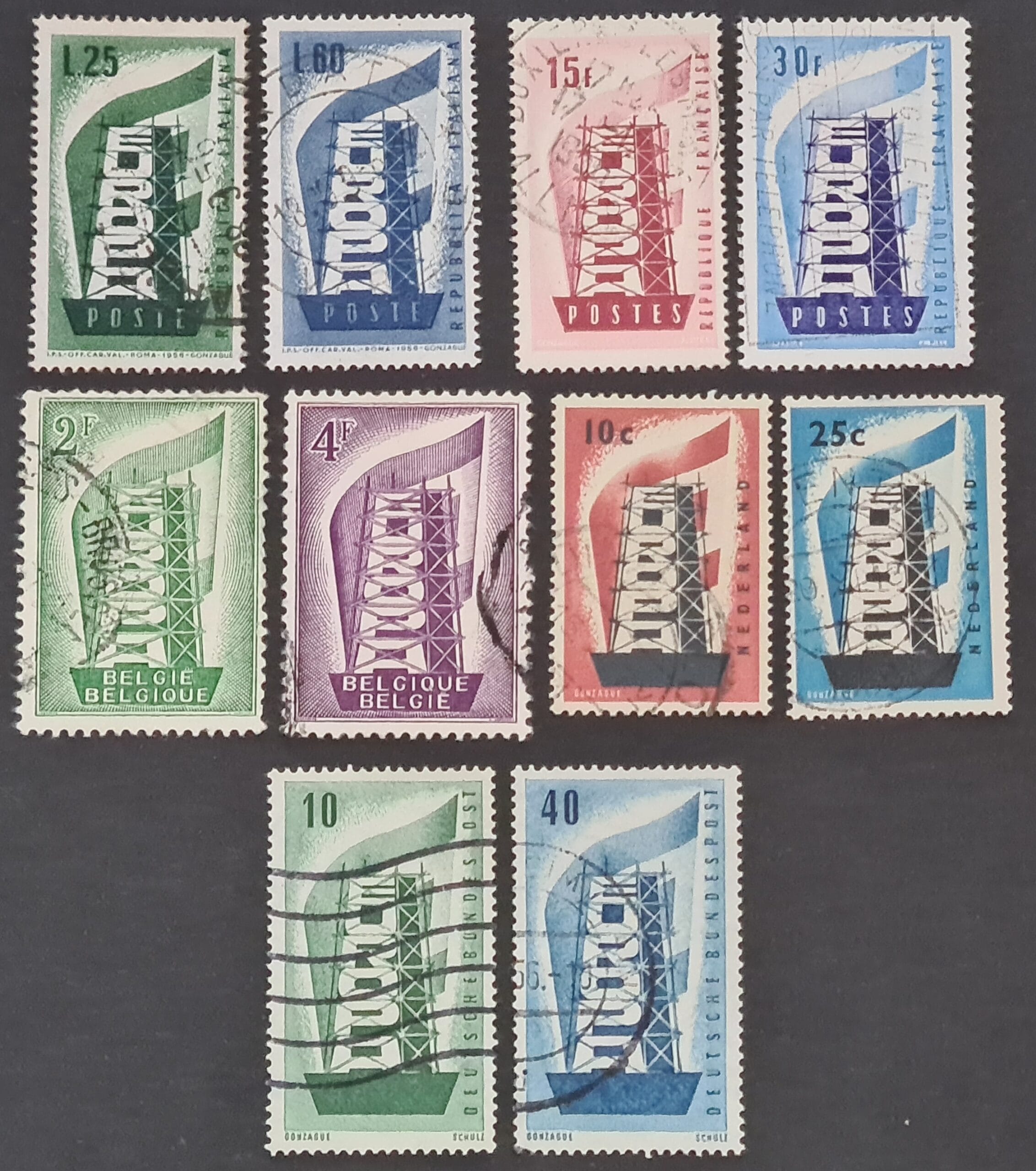 Europe 1956 Europa C.E.P.T Issues Sets of 5 Used Stamps