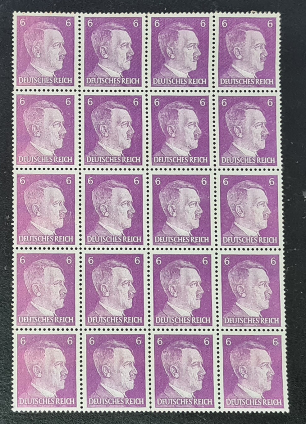 Germany Third Reich 1941/2 SG773 6pf red violet Shade 3 Block of 20 M/M