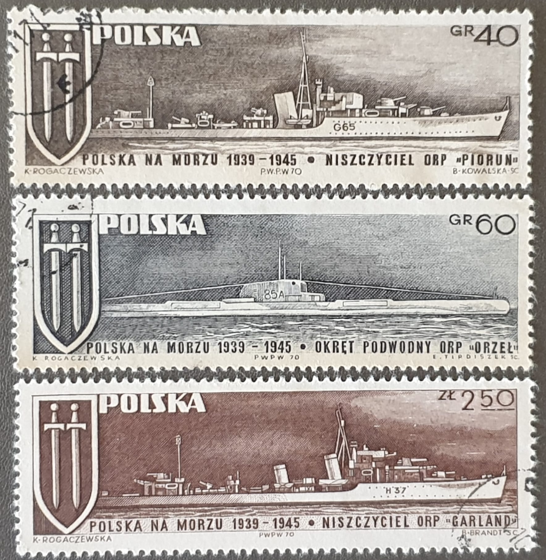 Poland 1970 “Polish Warships” SG2010-2012 Set of 3 used stamps