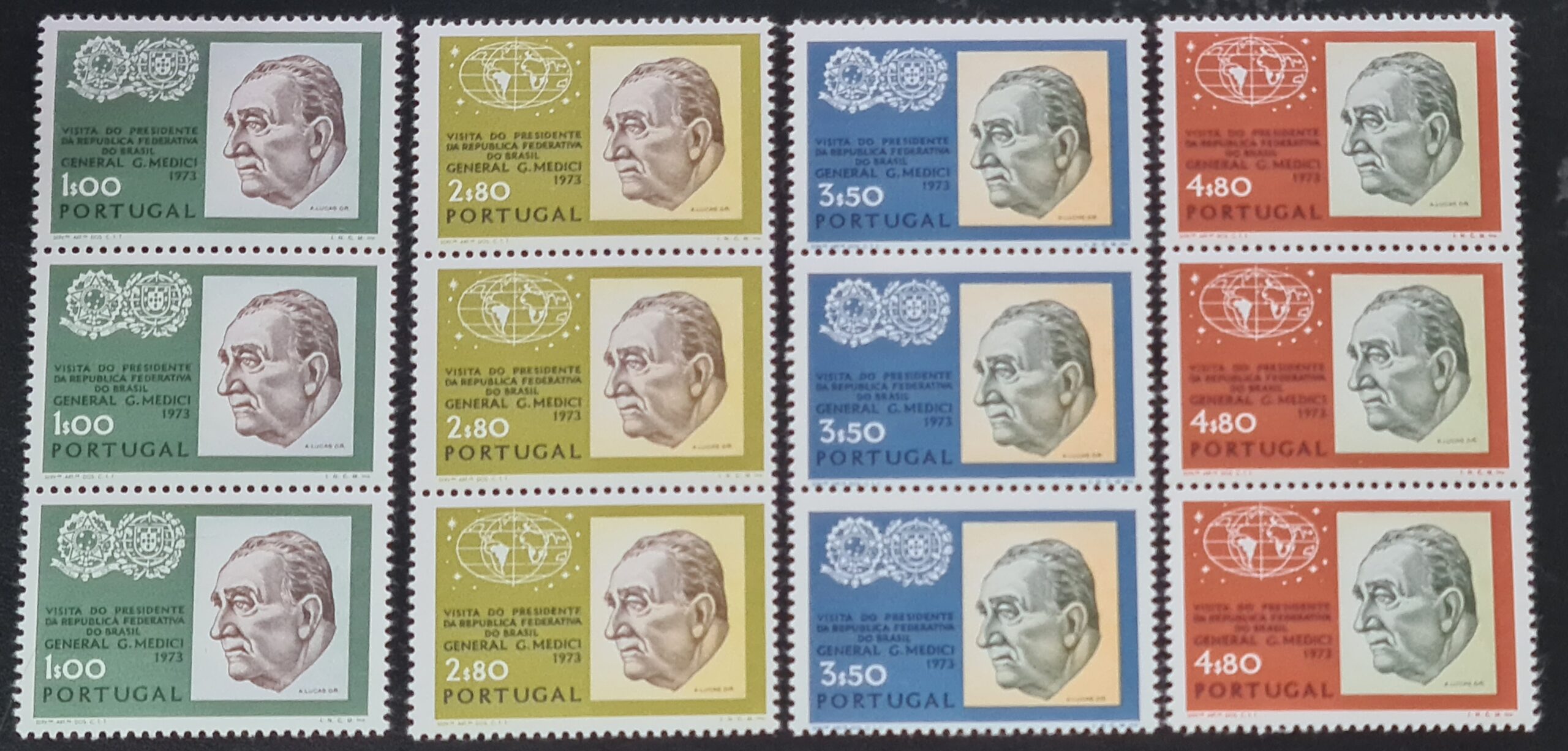 Portugal 1973 ‘Pres. Medici’ SG1502-1505 Set of 4 Strips of 3 MNH