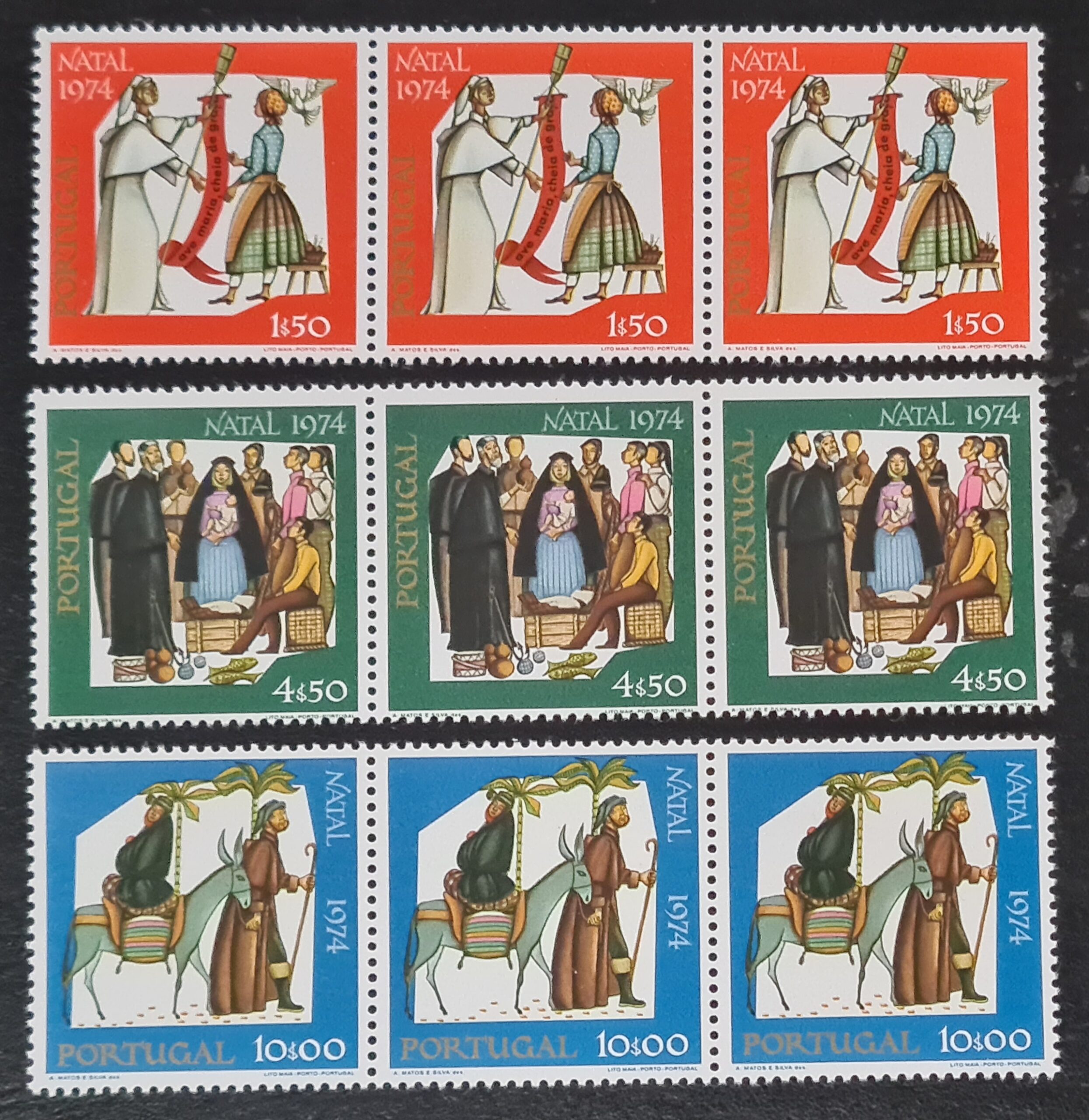Portugal 1974 ‘Christmas’ SG1552/4 Set of 3 Strips (3) MNH