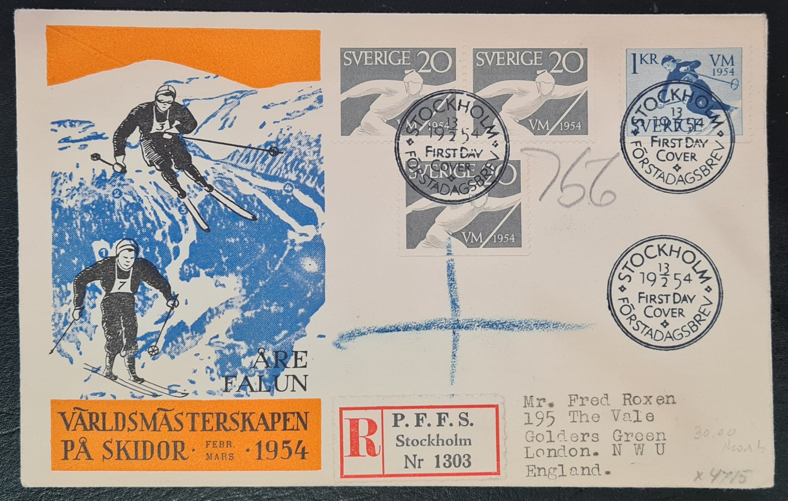 SWEDEN 1954 FDC ‘Sky World Championship’ REGISTERED Stockholm-London