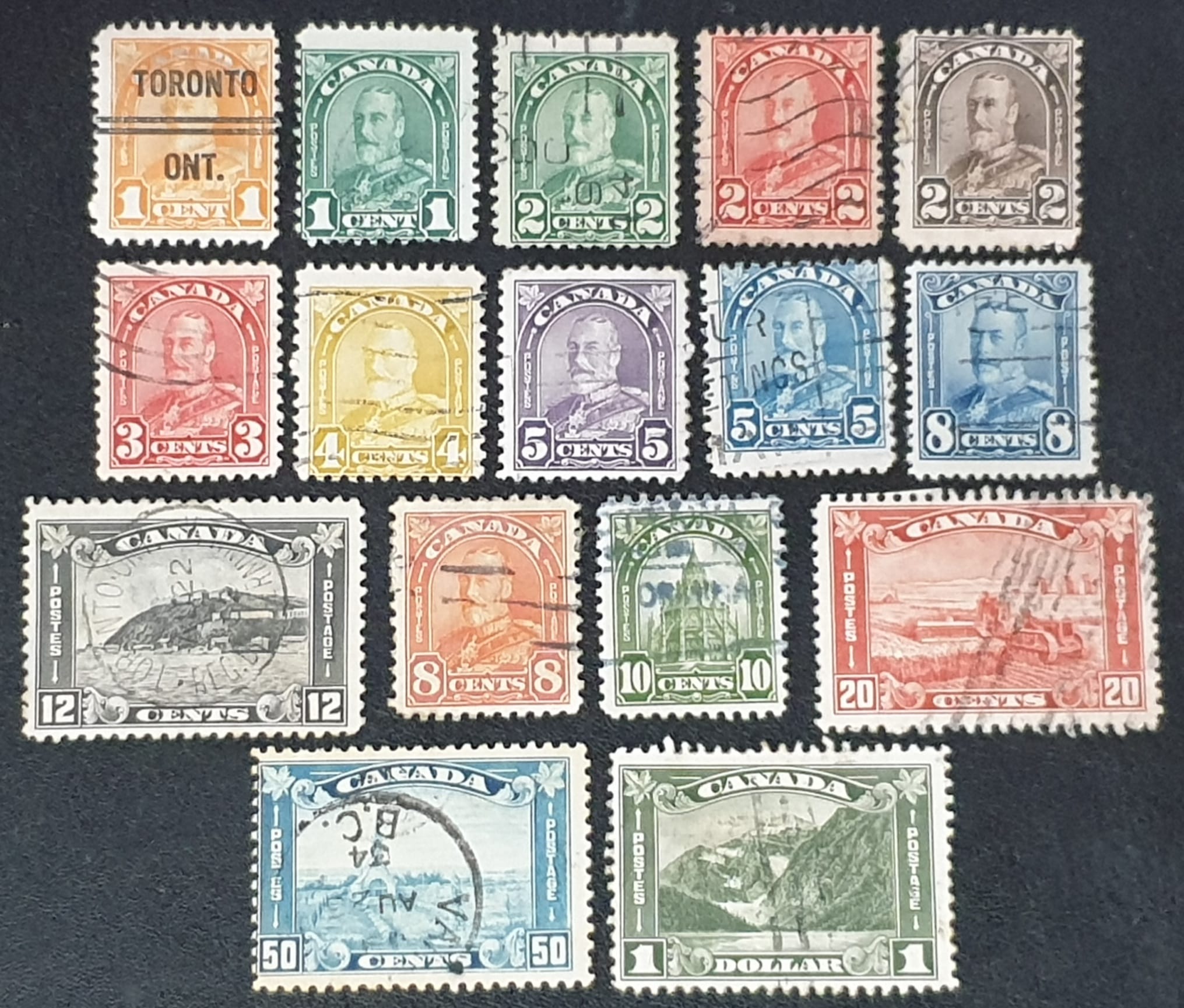 Canada 1930-31 SG288/303 “Definitive.” Set of 16 used stamps