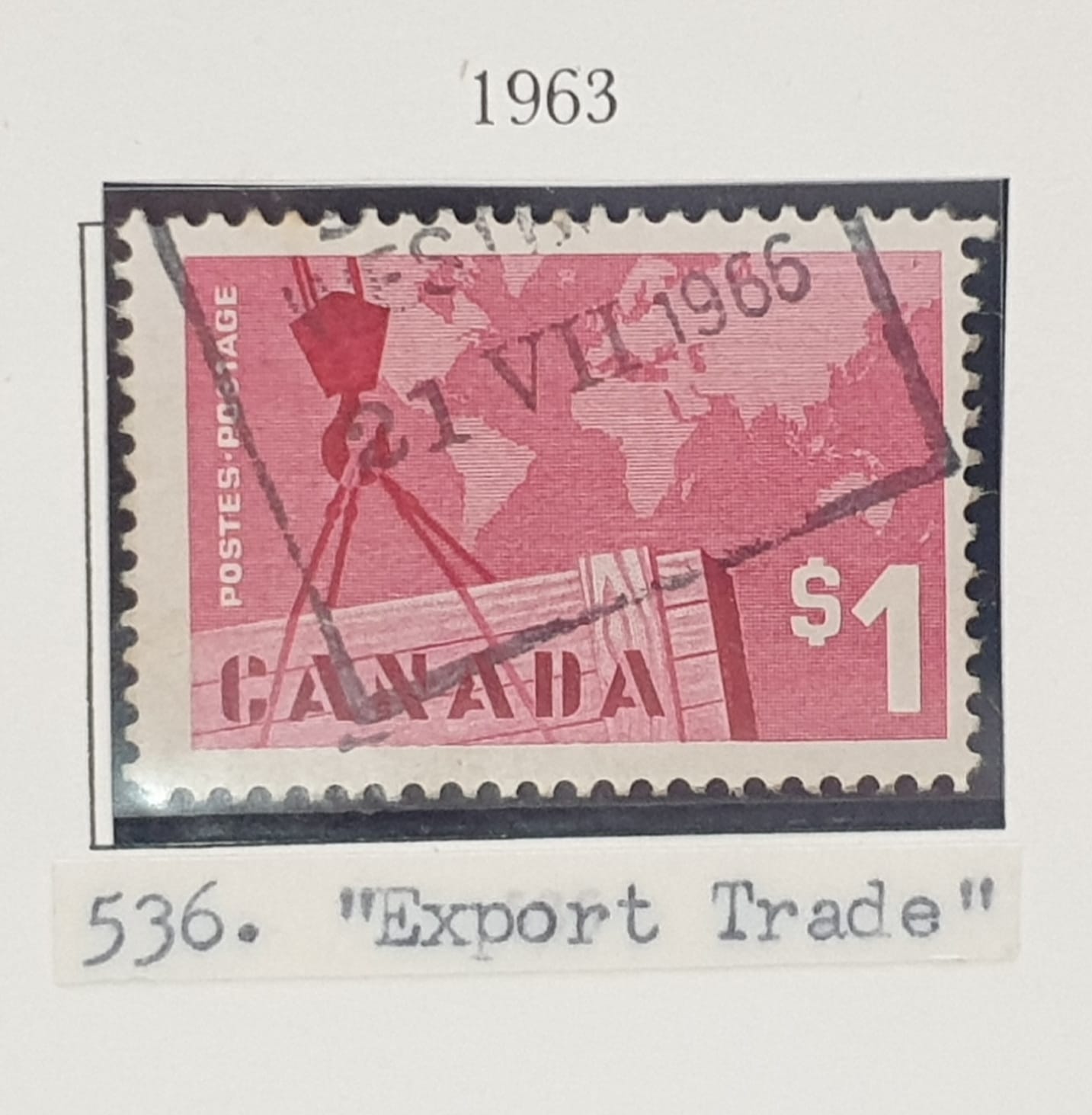 Canada 1963 “Export Trade” SG536 $1 carmine used single stamp