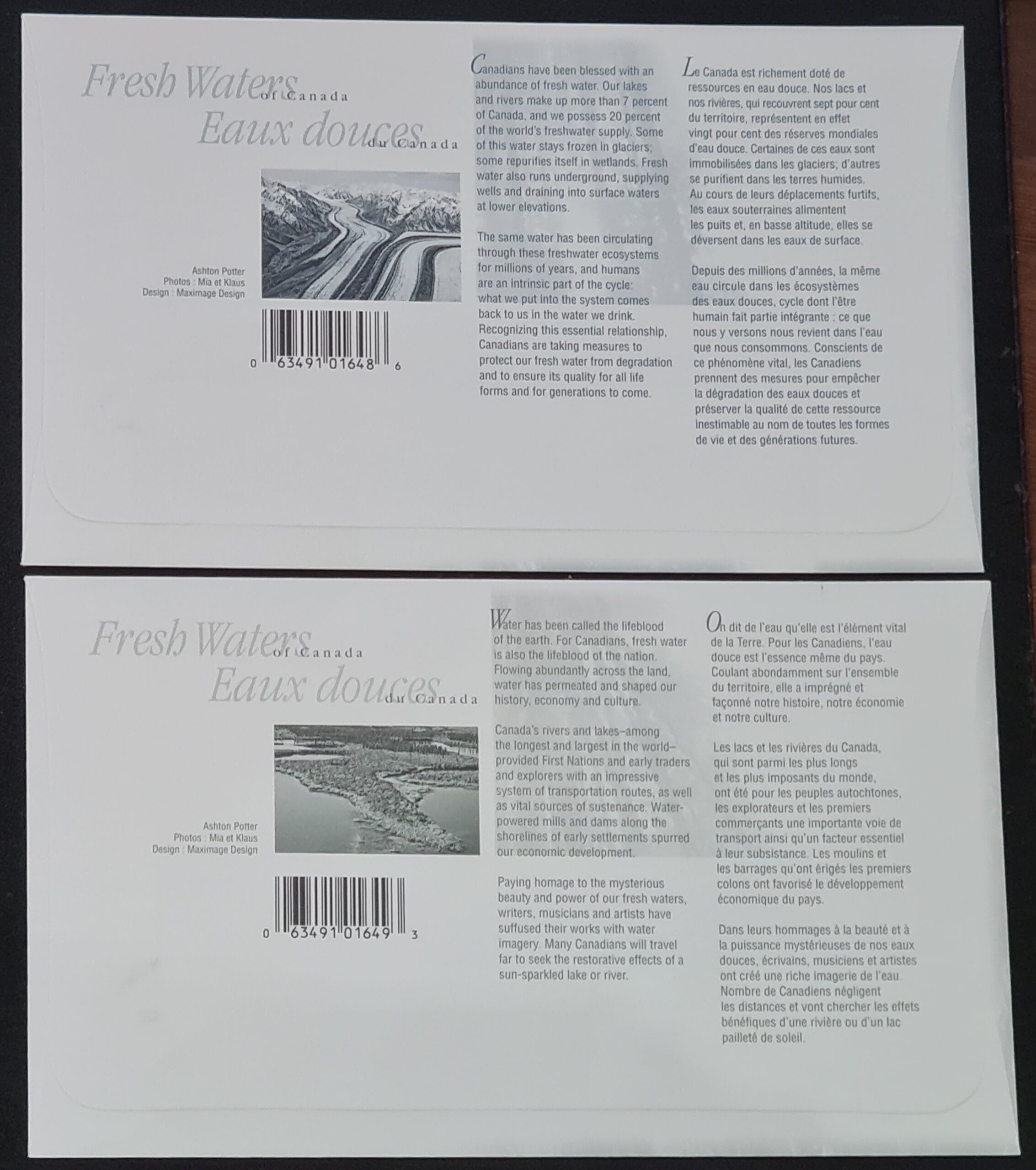 Canada 2000 ‘Fresh Waters of Canada’ Set of 2 FDC 23/5/00 OTTAWA